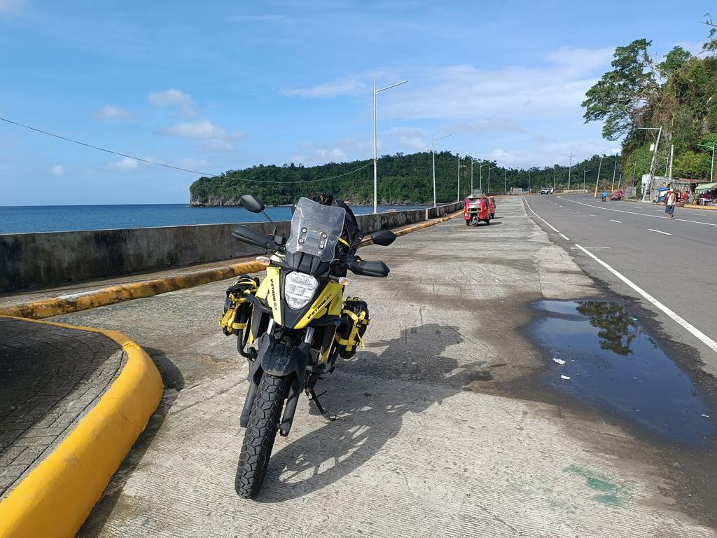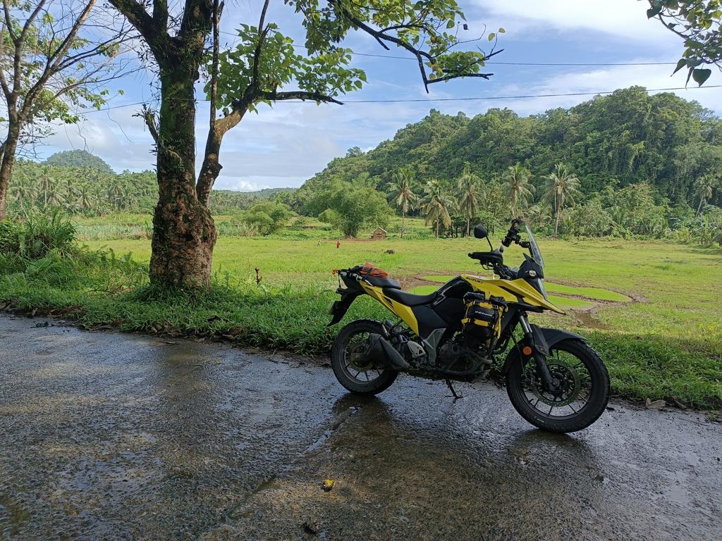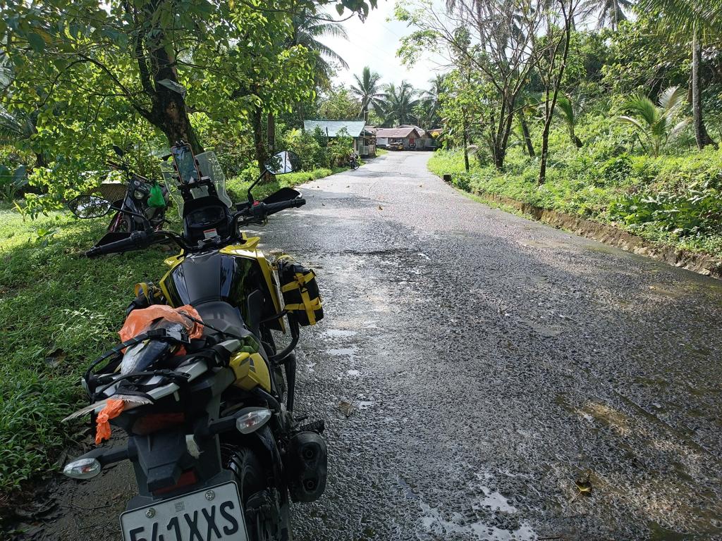 Das nächste Teilstück ging bis McArthur auf Leyte, eine Strecke von ca. 250 Kilometern. Es war für die nächsten Tage schlechtes Wetter angekündigt, besonders für den Heutigen. Das Frühstück ließ ich ausfallen und zog mich vorsichtshalber wasserdicht an. Ich war bereits um 6:30 Uhr unterwegs. Verkehr gab es um die Uhrzeit so gut wie nicht. Somit kam ich gut voran. Das Regenzeug zeigte Wirkung, bis auf ein paar Tropfen kam ich bei regenfreiem Wetter bis Leyte. Das sollte zum Glück die nächsten Tage so bleiben. In der Nähe von Tacloban quälte ich mich aus dem wasserdichten Zwirn. Der Streckenabschnitt von Abuyog bis Sogod war eine top Strecke fürs Motorrad, auch wenn es in den Bergen teils recht wolkig war. Auf dieser Strecke steht auch die Agas-Agas Brücke. Diese wollte ich mir immer schon einmal anschauen. An der Brücke machte ich eine kurze Pause.