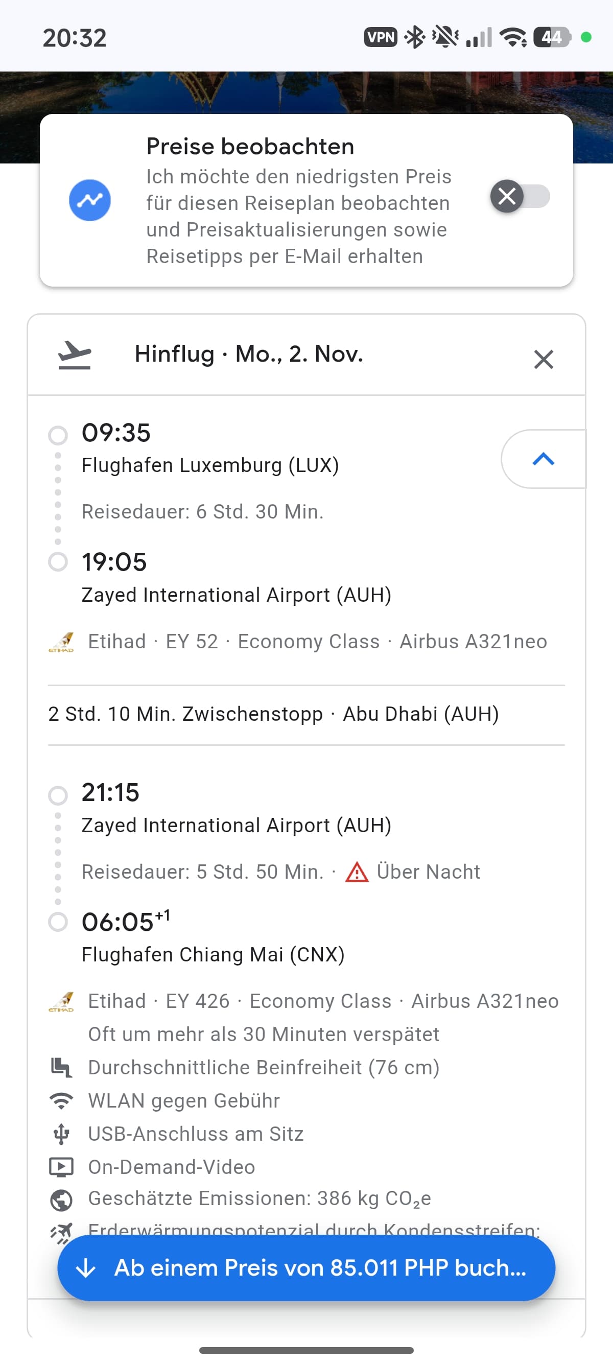 Ich war nie ein grosser Fan dieser Wüsten airlines mit einem Flugzeugwechsel mitten in der Nacht aber das hier gefällt mir . Ausserdem mit einer Flugzeit um die 22-24 Stunden in beiden Richtungen ist das zu ertragen .