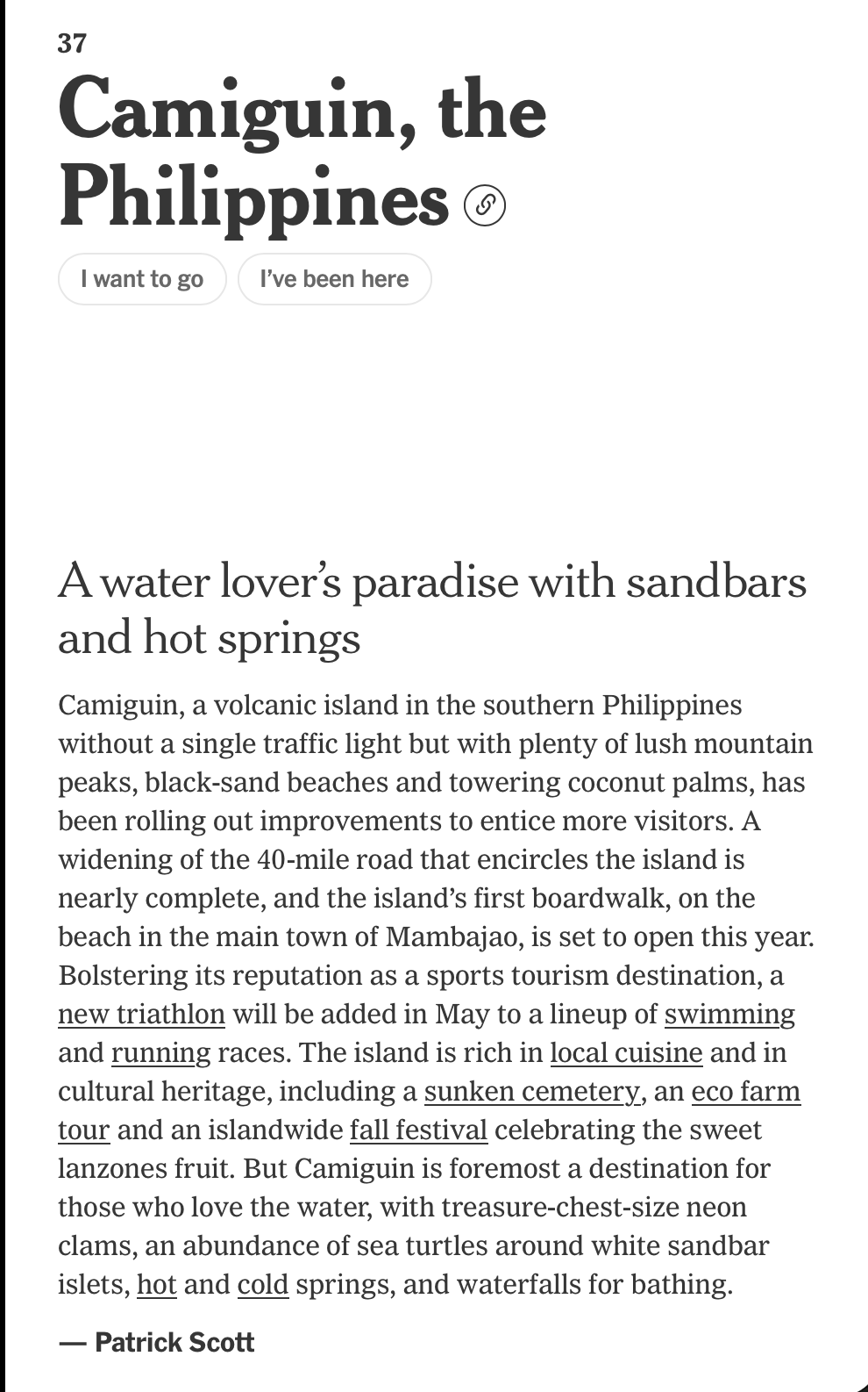 Dieses Jahr hat auch ein Reiseziel auf den Philippinen es in ihre Empfehlungsliste gebracht: Camiguin - als 37. Tipp von 52.