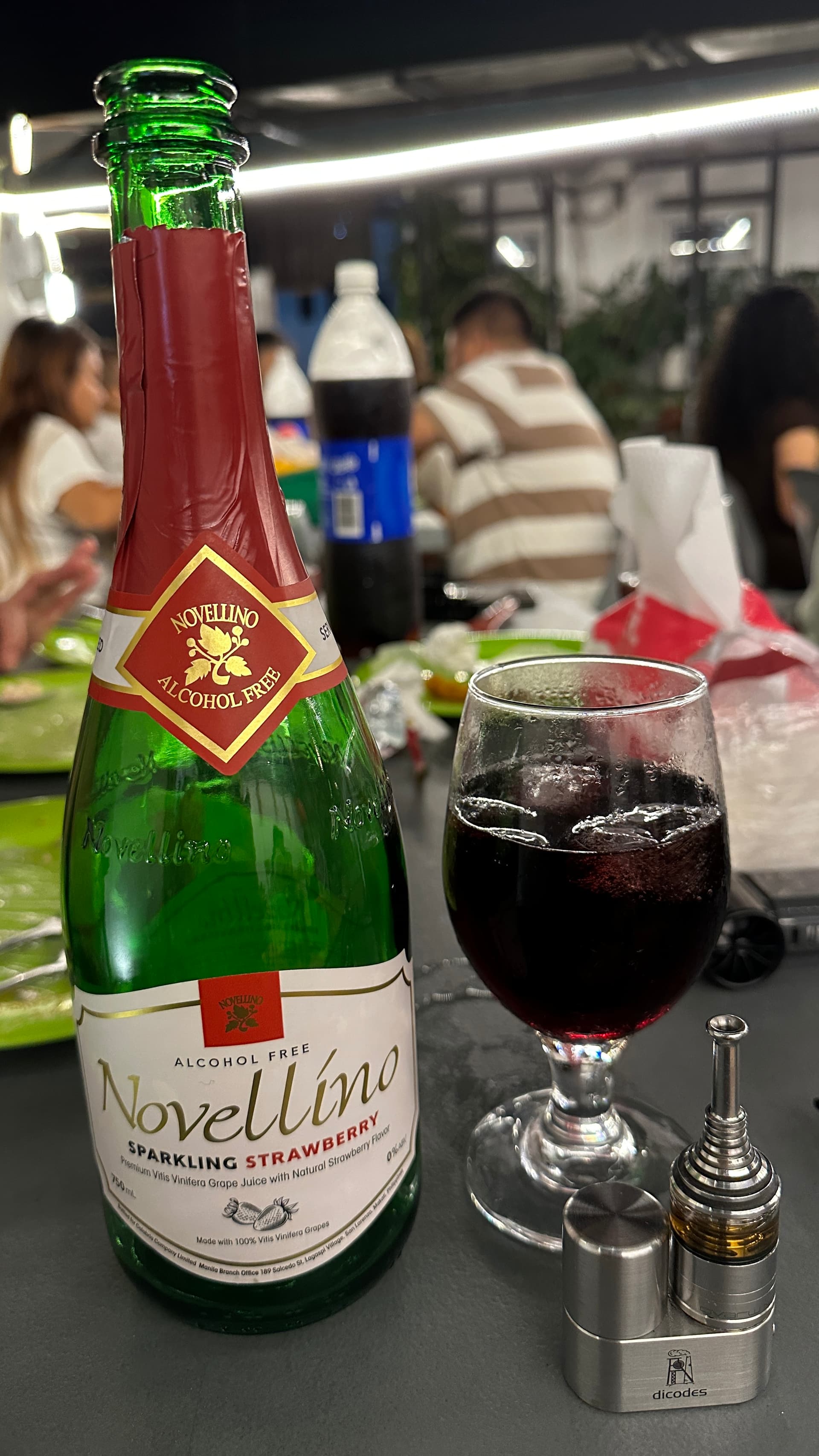 Wenn Mann den Gedanken an ein weinhaltiges Schaumgetränk vollkommen außer acht lässt und sich auf den eigentlichen Inhalt fokussiert, befindet sich letztendlich im - hoffentlich eisgefüllten - Glas dann ein ganz passabler Traubensaft-Sprudel mit (künstlichem?) Erdbeeraroma… zum Preis einer guten Flasche Sekt in Deutschland… ohne reichlich Eis jedoch definitiv viel zu süß für einen europäischen Gaumen…