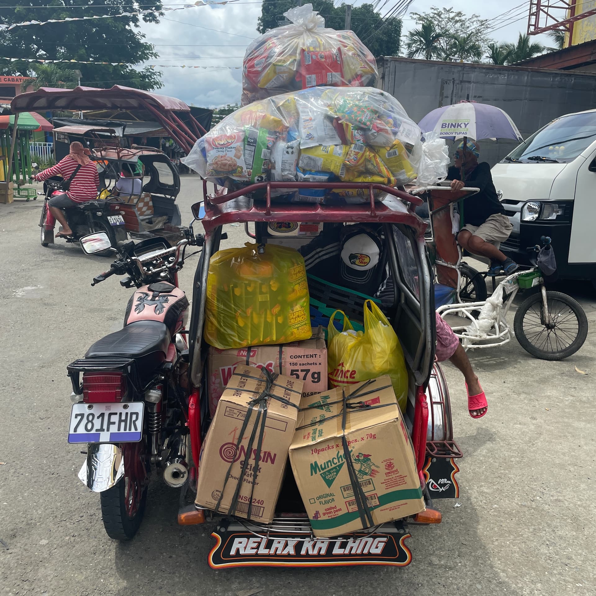 Gleichzeitig auch etwas für Maria’s Sari-Sari-Store eingekauft, das Trike von gestern Abend durfte wieder herhalten - da geht mehr rein und drauf als man so denkt.
