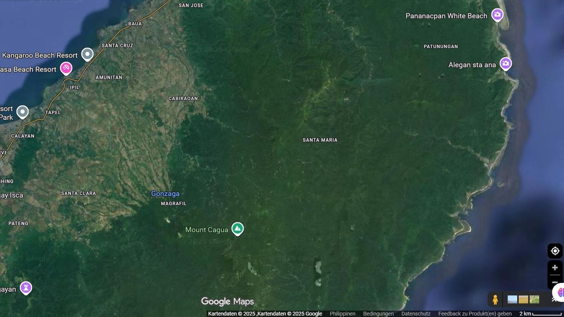 Üblicher Ausgangspunkt für Touren ist der Norden der Provinz Cagayan; nahegelegene Orte sind Gonzaga und die Küstengemeinden bei Santa Ana/Port Irene. Logistik (Zustieg per Straße, lokale Wege) kann regional unterschiedlich gut ausgebaut sein — oft ist ein Fahrzeug bis zu einem Dorf oder Trailhead nötig, danach erfolgt der Zustieg zu Fuß. Lokale Touranbieter und Gemeinden können Transport, Guides und Verpflegung organisieren.