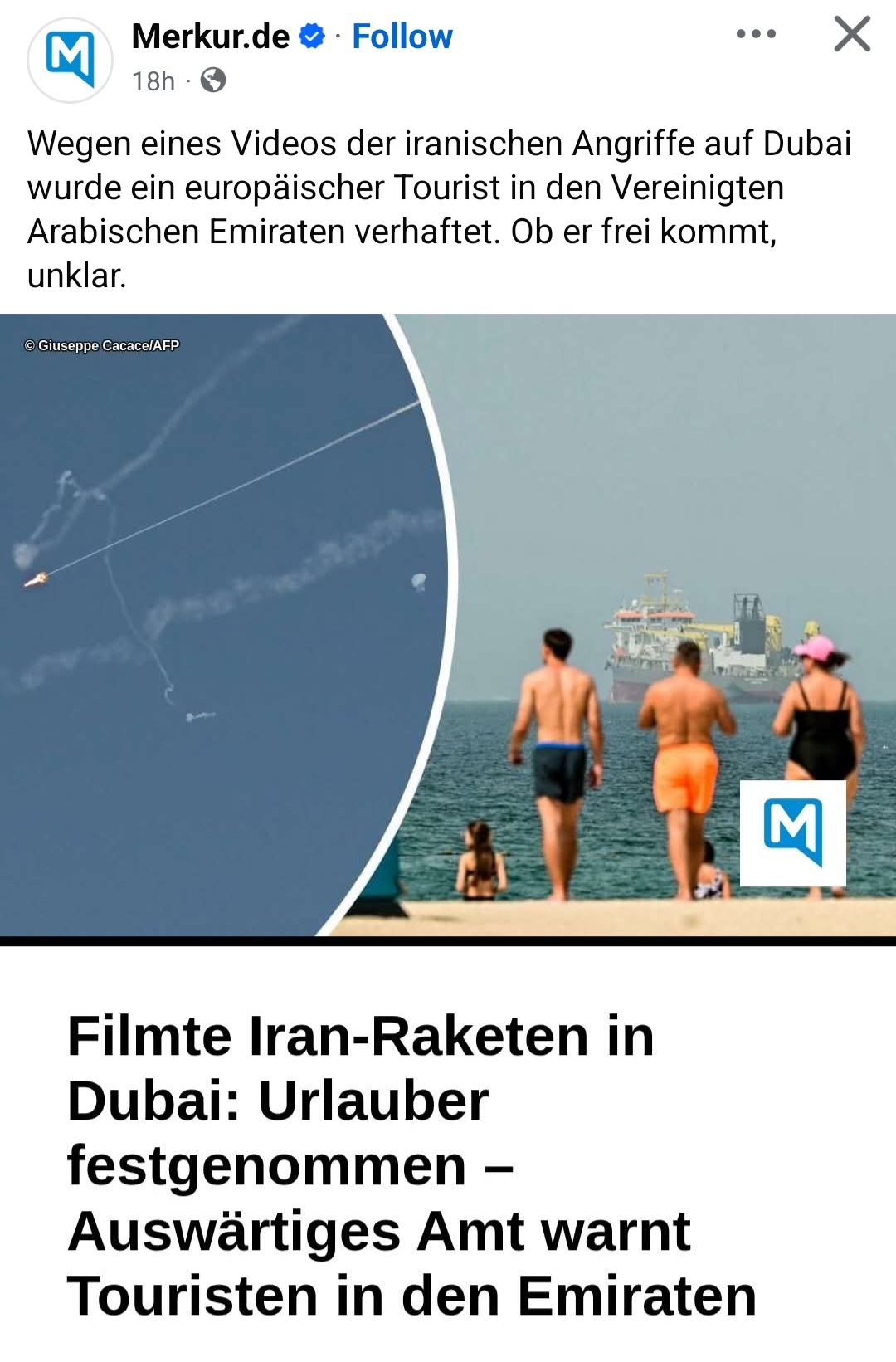 Ich möchte den Post mit meinen Gedanken an die iranische Zivilbevölkerung abschließen. Was die freiheitsliebenden Menschen gerade im Iran erleben, ist mit Dubai nicht vergleichbar. Ich bete, dass der Krieg von kurzer Dauer ist und er den Menschen im Iran eine echte Chance gibt.