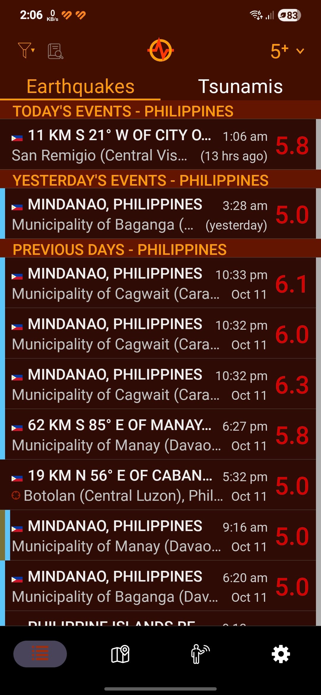 Ein da geborener 32jähriger erlebt das jetzt zum ersten mal.Und ich auch seit ich auf den Philippinen weile.Die Häufung stärkerer Nachbeben war mir so nicht bewusst.Wird zwar immer vor gewarnt,ist mir aber in meiner Zeit hier nie so aufgefallen.
