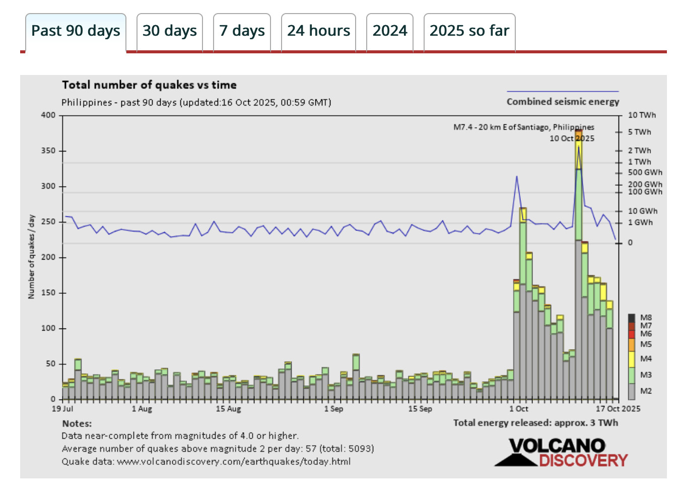 Earthquake Statistics: Philippines - Detailed Charts and Tables, Current and Past Seismic Activity