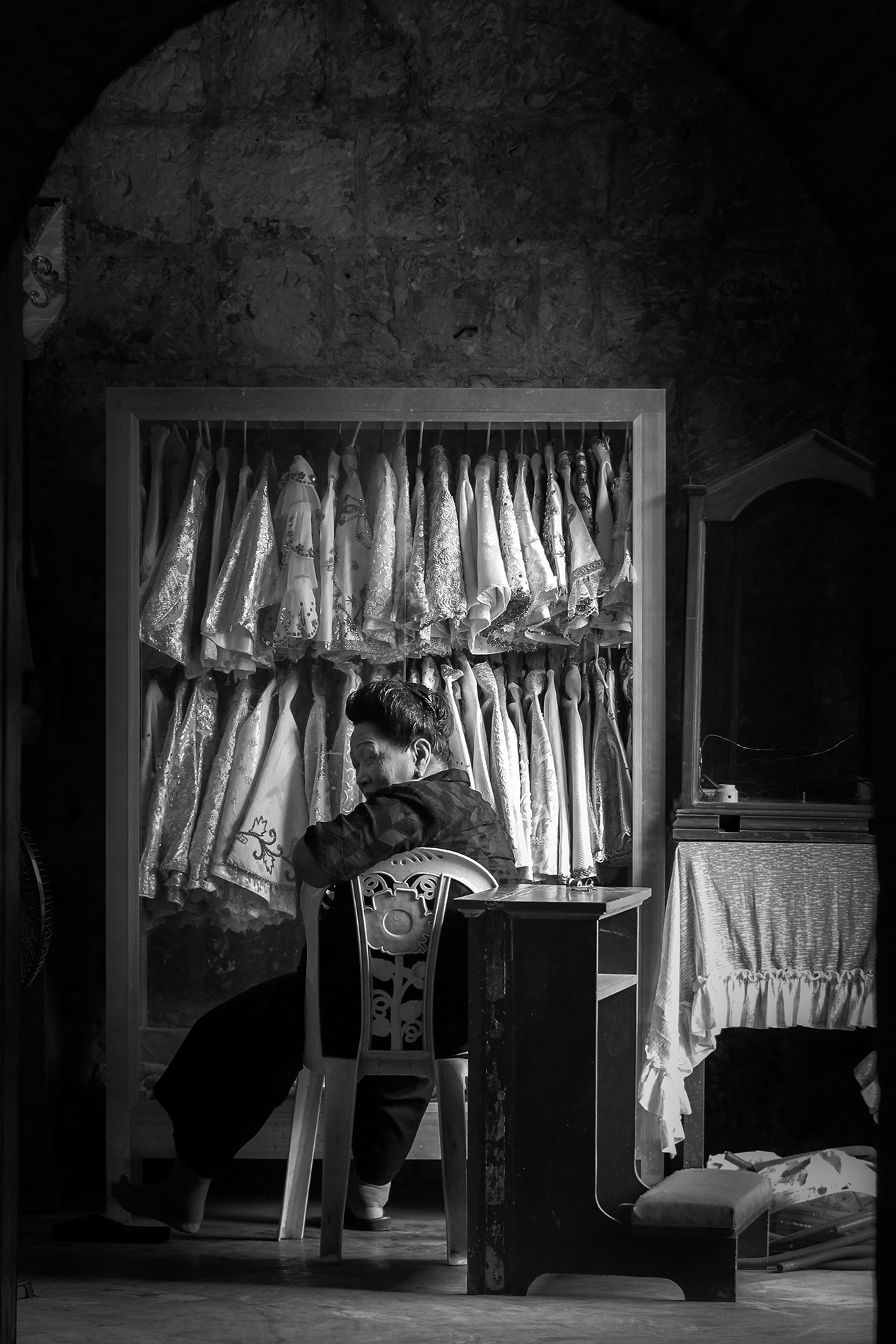 In einer Kirche sahen wir eine „Messdienerin“ die Situation war grotesk. Das Licht für Fotografen eine Wohltat.