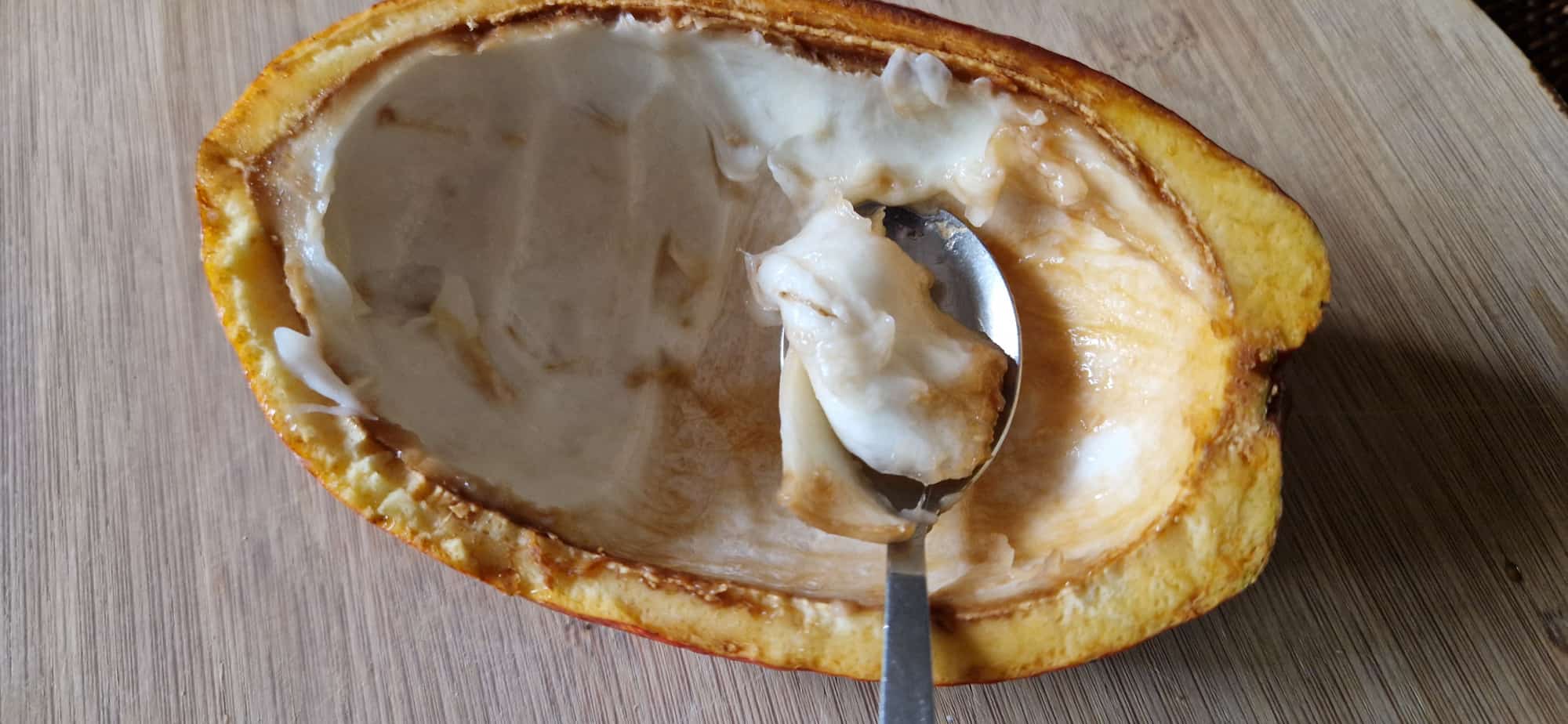 Die Pajo Mango war für mich bisher eher unbekannt, und da wir sie noch nicht ganz reif bekommen haben, probiere ich sie gerade ähnlich wie die Indian Mango – also grün und in Scheiben geschnitten. Der Geschmack ist etwas harziger und intensiver, aber trotzdem lecker.