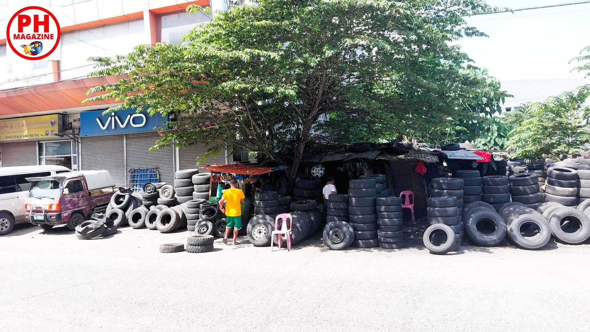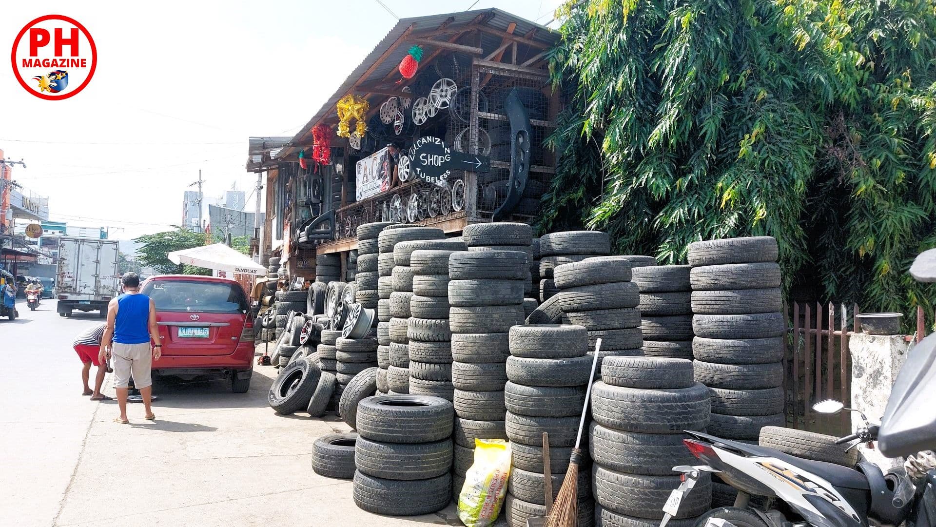 Nach langem wohnen in Cagayan de Oro ist mir aufgefallen, wie konzentriert Händler für gebrauchte Reifen und Felgen dort auftreten. Nachdem wir die Metallhändler besucht hatten, machten wir uns den kurzen Weg auf zu den Händlern mit den gebrauchten Reifen. Besonders interessant fand ich die Szene auf der Captain Vicente Roa Street. Dort haben einige Händler ihre Ware auf einem unbebauten Grundstück unter freiem Himmel aufgebaut.