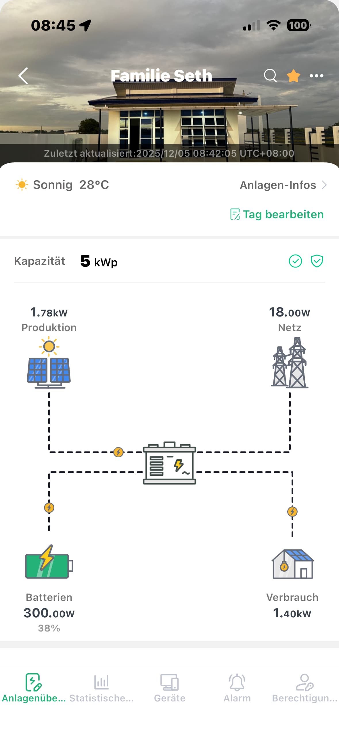 Nunmehr, im ‚Winter‘, liegen bei nächtlichen Außentemperaturen um und unter 22 Grad (wo die Anlage ja eigentlich nur noch die Luft trocknen muss) regelmäßig sogar nur knapp 400 Watt Gesamtverbrauch an. An heißen ‚Sommertagen‘ komme ich schon mal über 2000 Watt, aber dann liefert auch die Solaranlage regelmäßig Spitzenergebnisse, so daß ich mir das leisten kann…