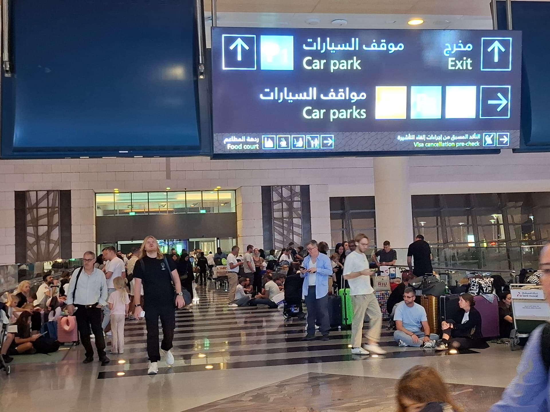 Es war inzwischen 22:00 Uhr und auch die Cebu-Pacific-Crew hatte es mittlerweile zum Flughafen geschafft. Wir wurden im Untergeschoss einquartiert und hatten dort leider mal wieder keinen Empfang mit unseren Smartphones. Der Kontakt mit der Familie war somit erschwert. Meine eSims funktionierten teilweise gar nicht mehr. Und wieder einmal hieß es warten. WLAN gab es nicht, zumindest konnte niemand es aktivieren. Man riet uns, die eSIM des Omans zu kaufen und nutzen.