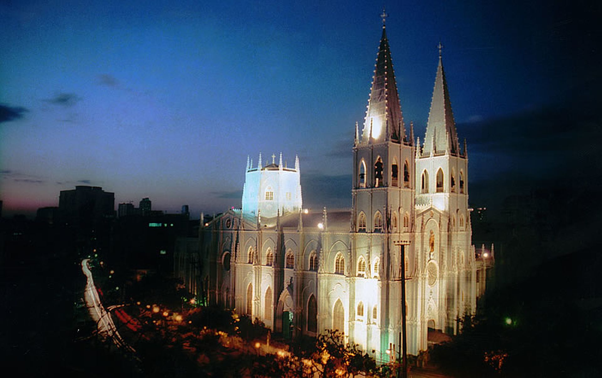 Die San Sebastian Church ist ein gotisches Juwel: ihre hohen Spitzbögen, filigranen Türme und das beeindruckende Sterngewölbe erinnern an europäische Kathedralen. Die Fassade wirkt trotz des Stahls leicht und elegant, vor allem durch die mintgrüne Farbgebung, die der Kirche eine unverwechselbare Erscheinung verleiht.