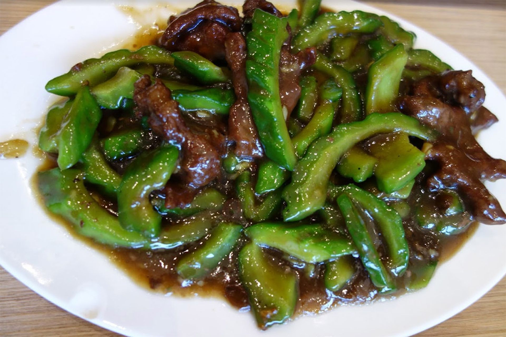 Rechts: Rindfleisch mit Bittermelone ist ein Toho-Klassiker, der gleichermaßen herzhaft und bitter schmeckt.