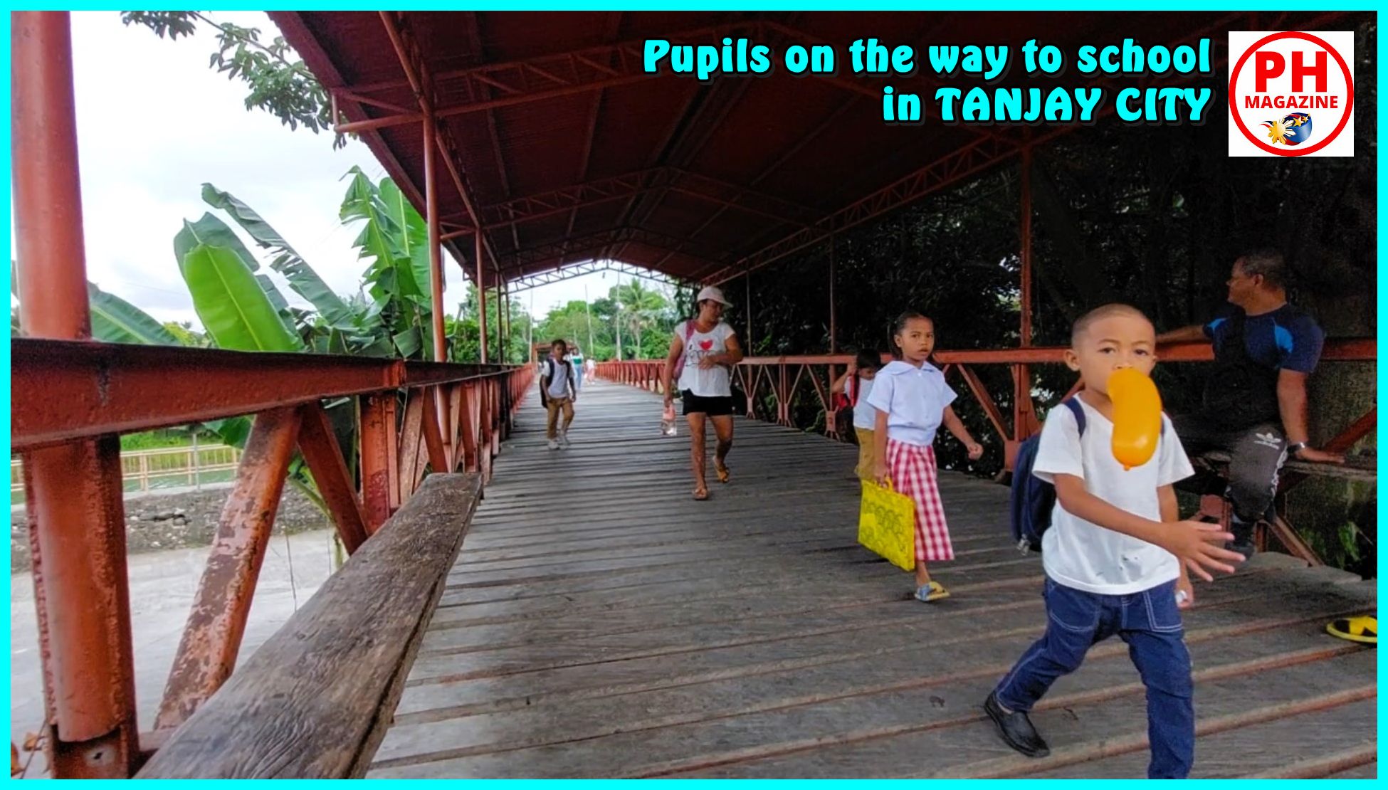 Da ich den Markt von Tanjay schon kannte, beschloss ich diesmal, in die andere Richtung zu spazieren – hinunter zum Fluss. Dort angekommen, stieß ich auf eine teilweise überdachte Stahlbrücke mit Holzplanken, die sofort meine Neugier weckte. Motorisierte Fahrzeuge dürfen diese Brücke nicht befahren. Am Ende stehen verschweißte Rohre im Boden, die als Sperre für alles mit Rädern dienen – egal ob Zweirad, Tricycle oder Auto.