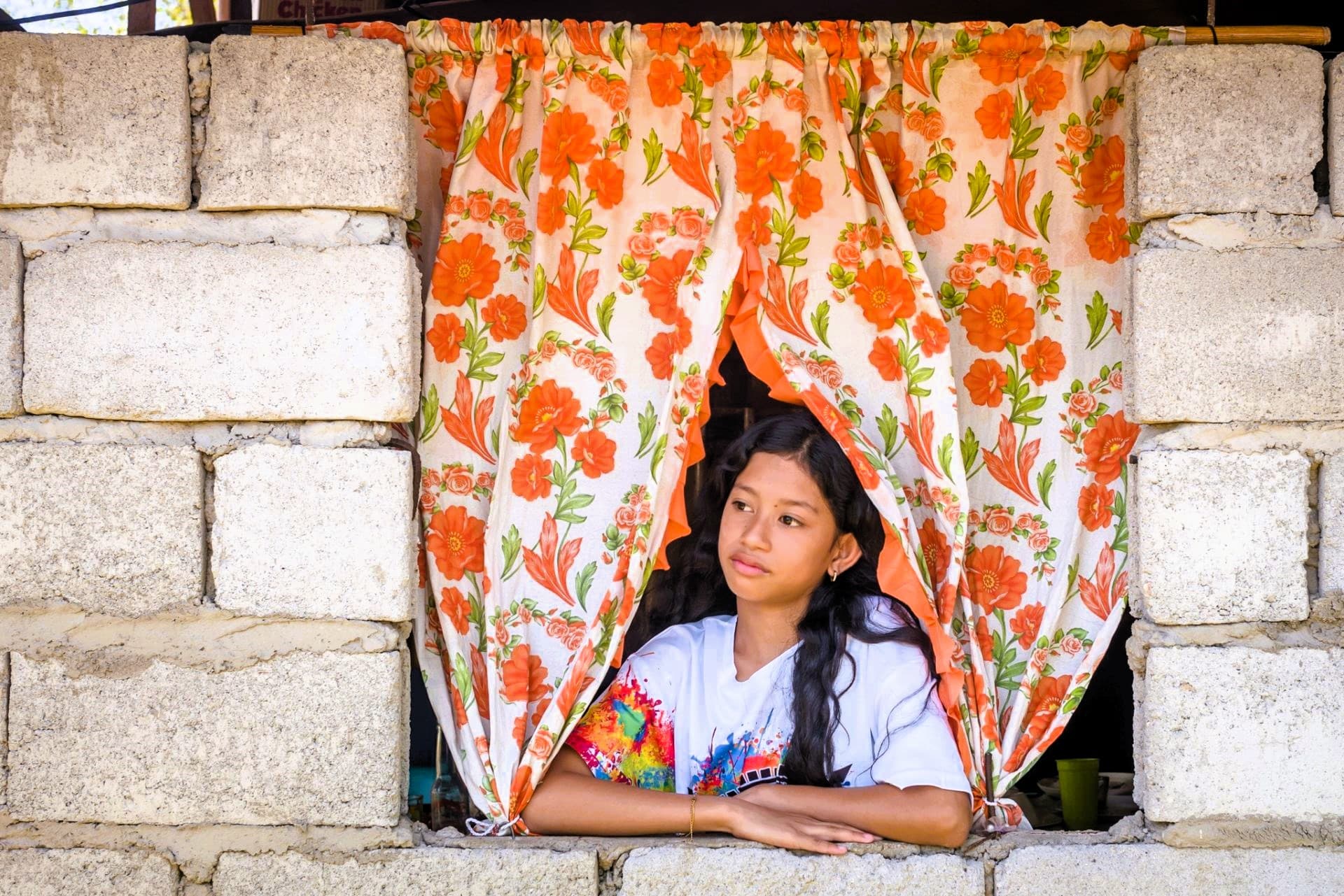Bei einem unserer Besuche in den Bergen von Zamboanguita durften wir den Künstler Bebeboy Aguirre in seinem Zuhause filmen und dokumentieren. Auf dem Foto schaut eine seiner Töchter aus dem offenen Fenster ihres einfachen, aber liebevoll gestalteten Hauses – ein Moment, der viel über das Familienleben dort erzählt.