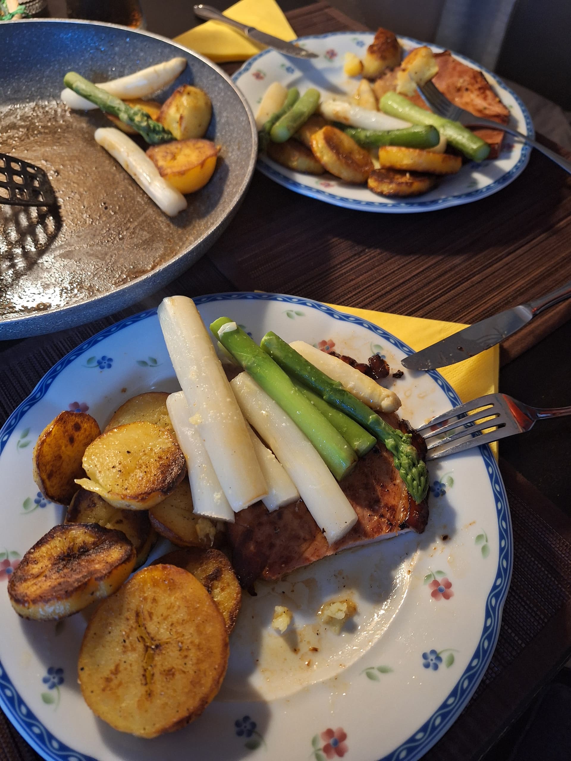 Hier ist jetzt die „Spargel-Saison“ eröffnet. Und so gab es den ersten Spargel heute auch bei uns.