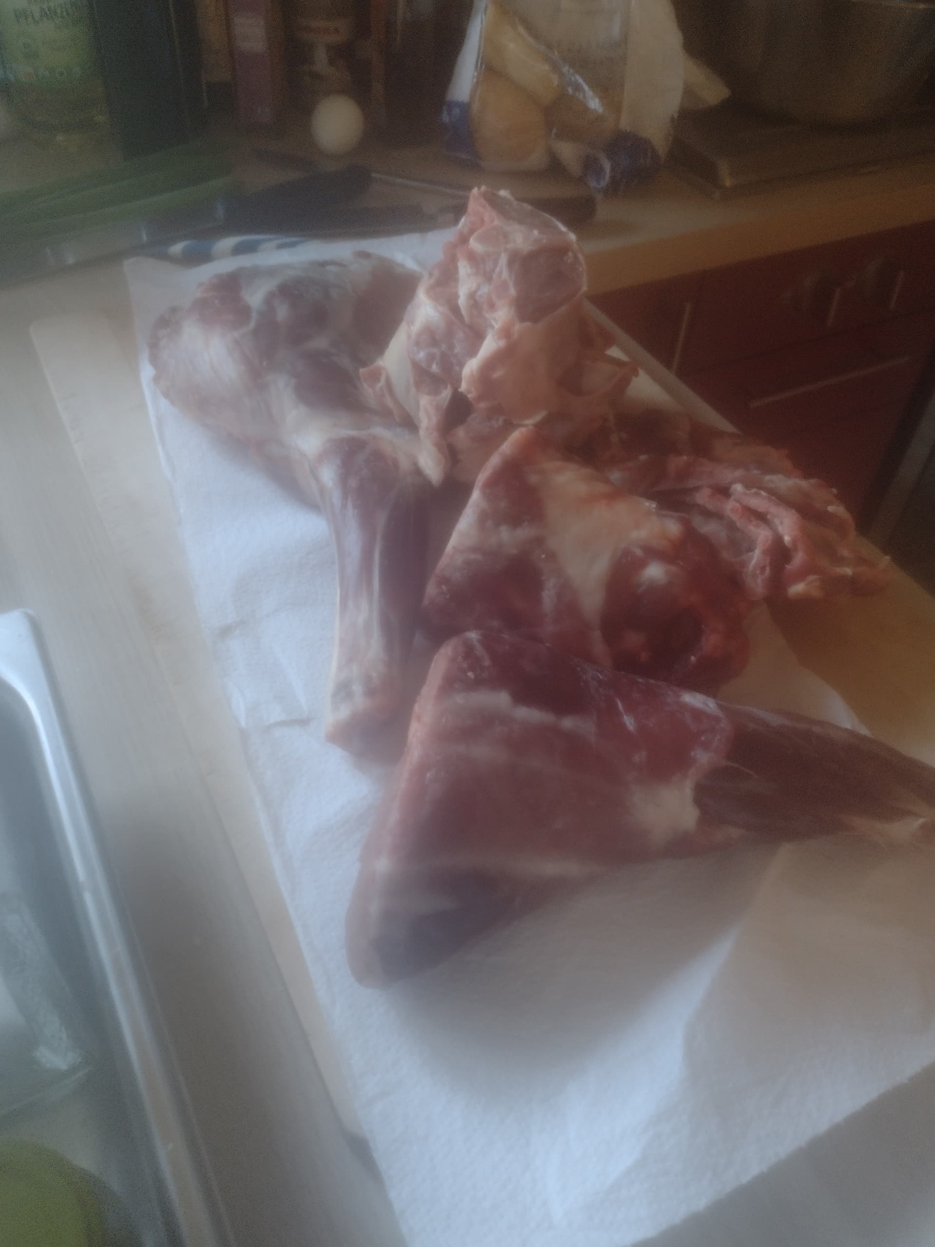 Vorhin kam ein Anruf aus dem Nachbardorf, ob ich denn wieder Lammfleisch haben wollen. Bin sofort losgesprintet und habe mir 4,5 kg gesichert. Einjähriges Kamerunschaf, nur Weidehaltung, 7€/kg.