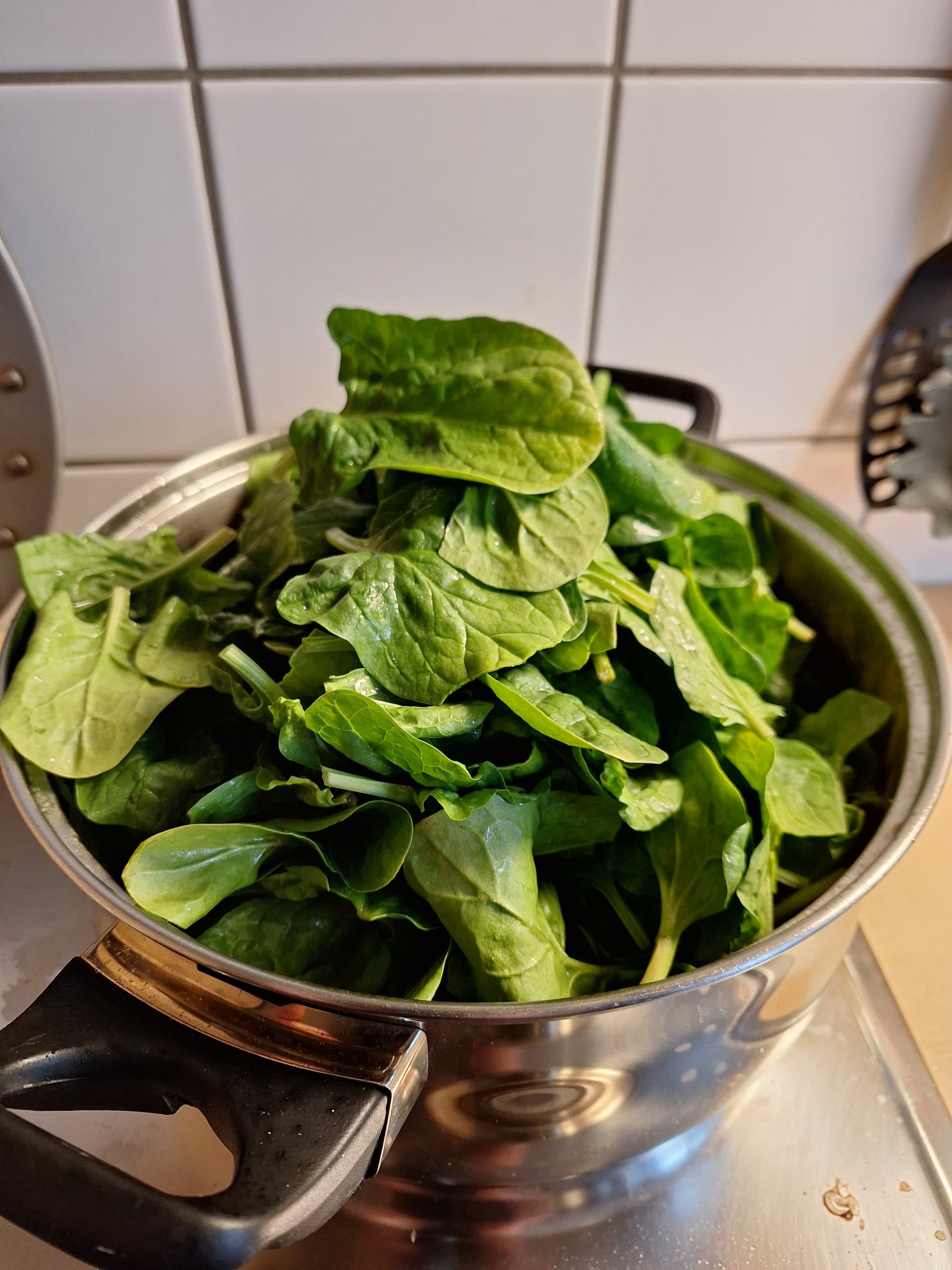 Kurz vor Ende (Fleisch, Kartoffeln und and.Gemüse muss schön weich sein) kommt gut Blattspinat mit rein und wird untergehoben.
