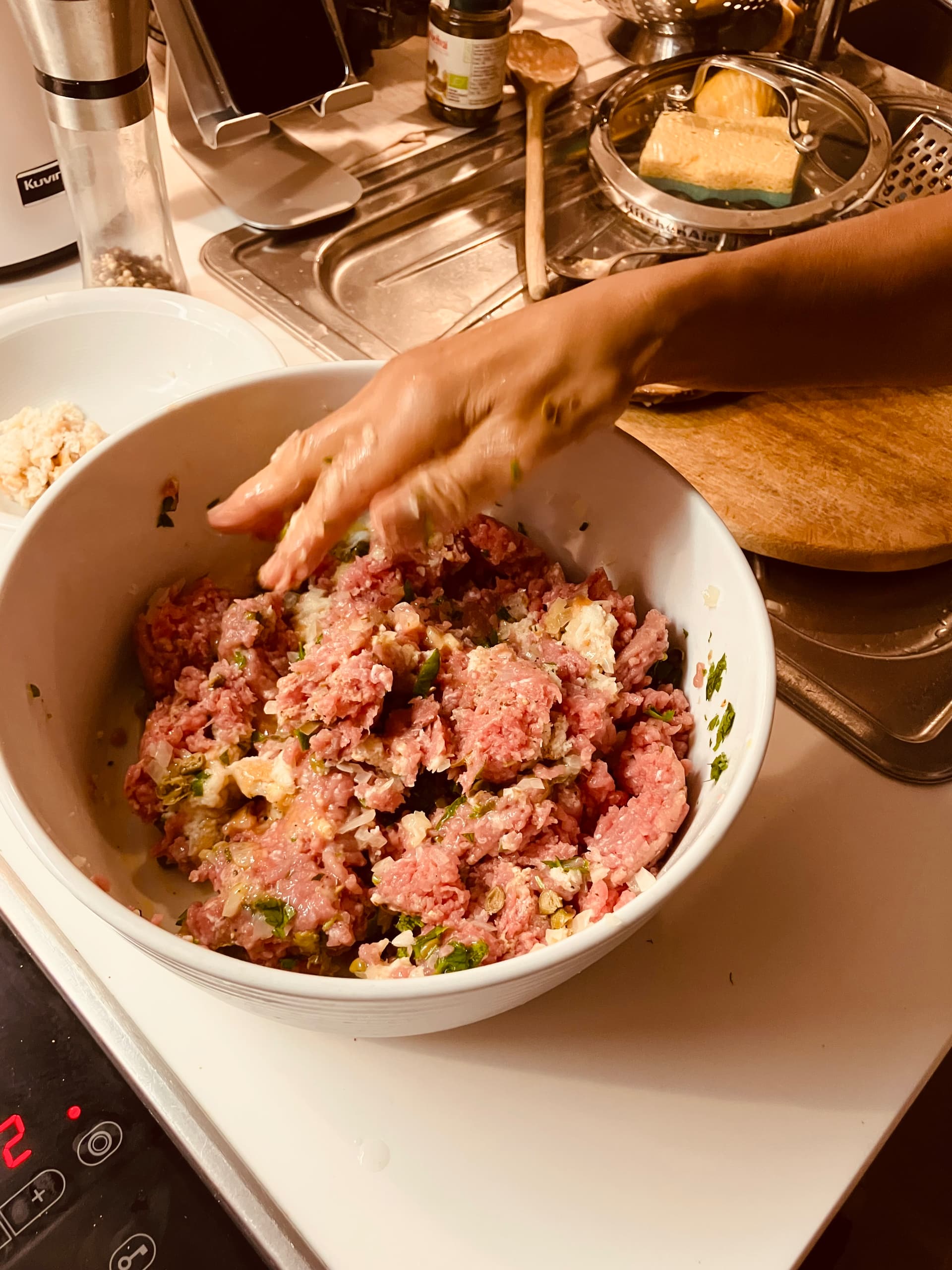 - Klopse mit Kalbshack, Semmel, Ei, Sardellen, Zwiebeln, Muskat etc.