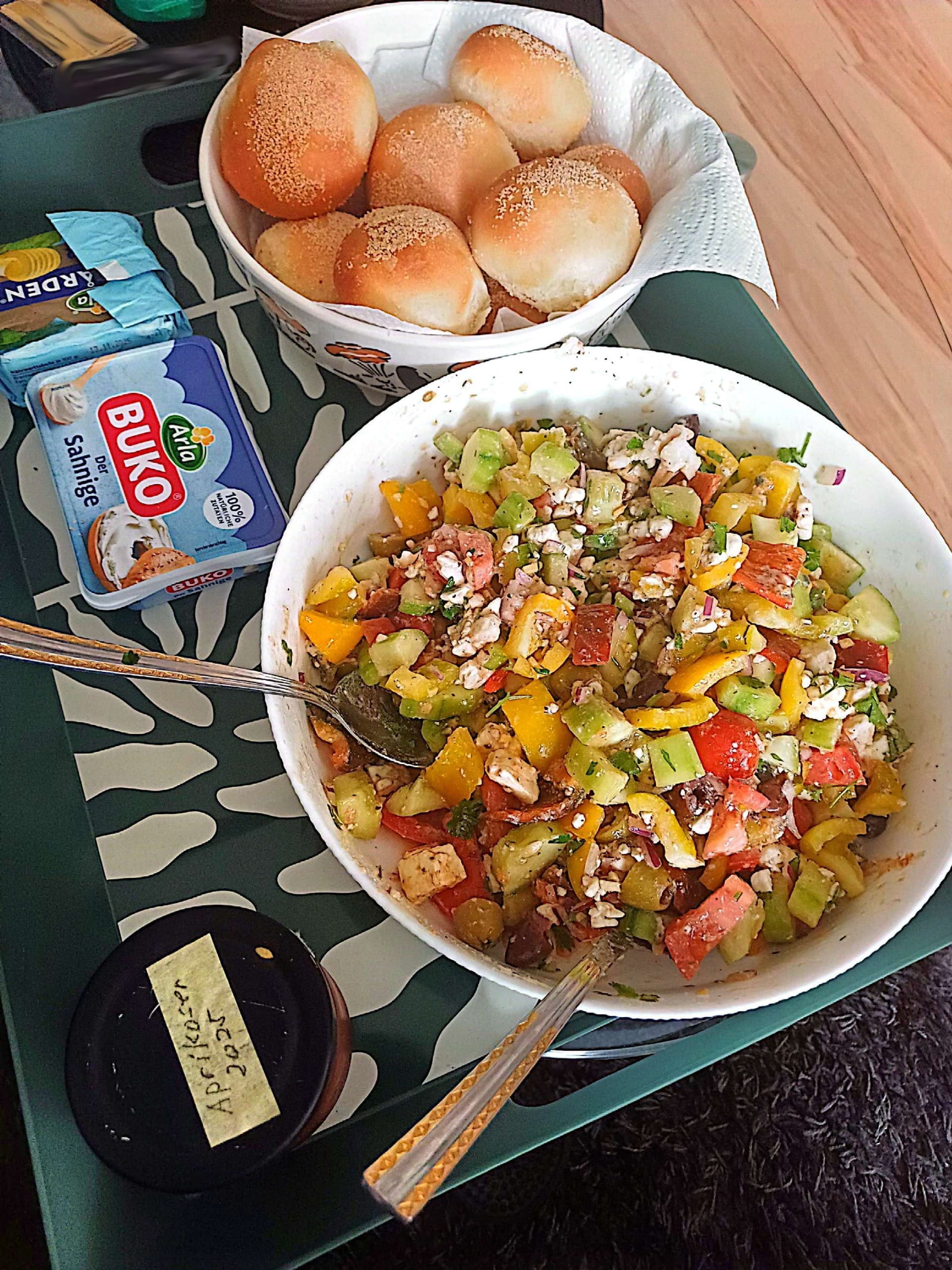 Frau hat die Brötchen selbst gebacken, irgendwie ist sie derzeit auf den Brot und Konsorten Backtripp.