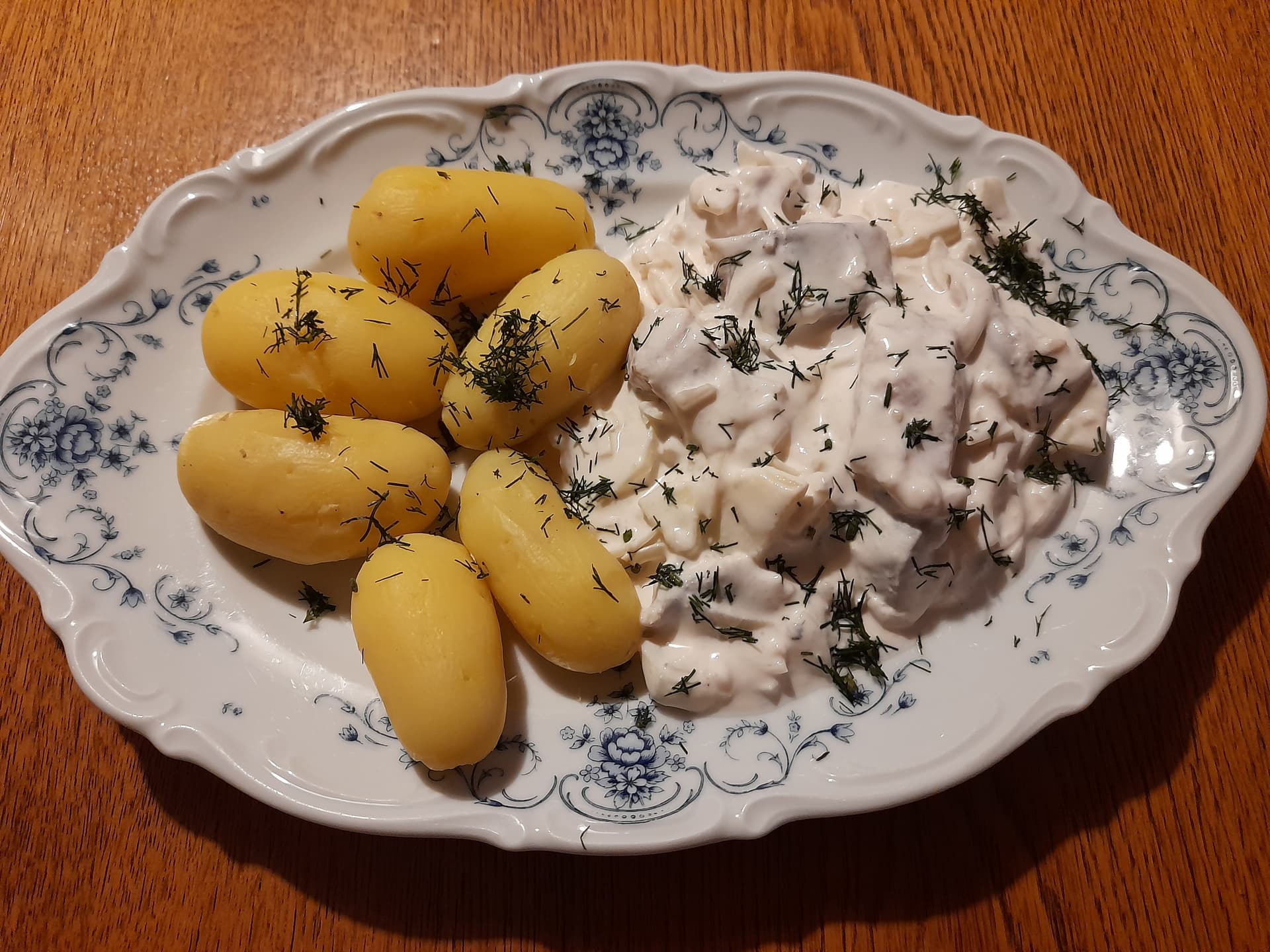 Vor 2 Tagen eingelegt in saurer Sahne, mit Zwiebeln und Äpfeln, dazu soll es Pellkartoffeln geben. Bild folgt heute Abend.