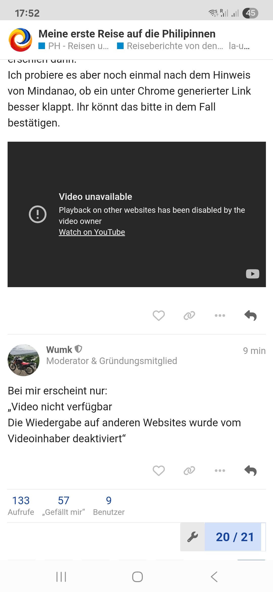 Schön, dass es jetzt mit dem Video geklappt hat. Falls jemand das andere Video doch noch sehen möchte, dann hier 2 Tipps: