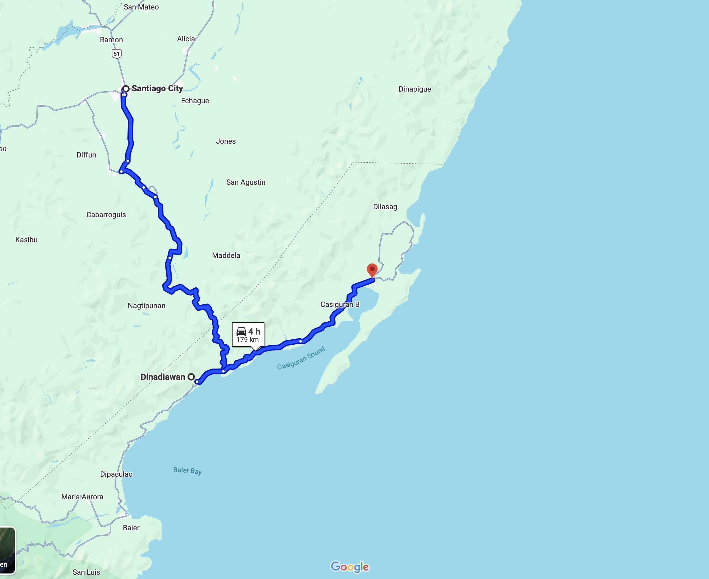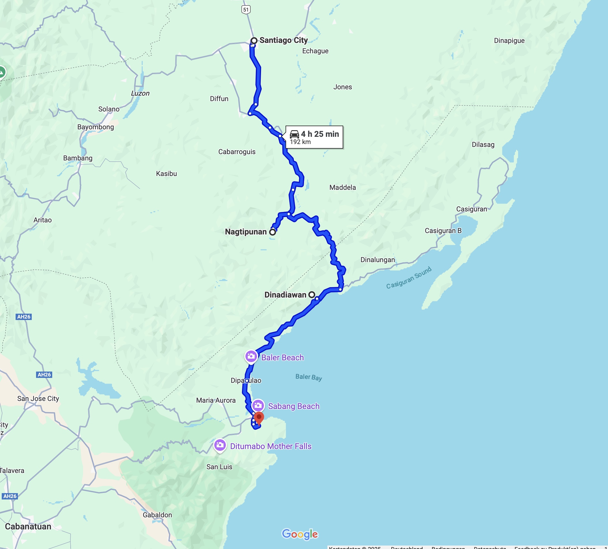 Habe ich gesehen … man muss ab Casiguran zurück über die Berge auf die AH26, dann weiter hoch nach Norden