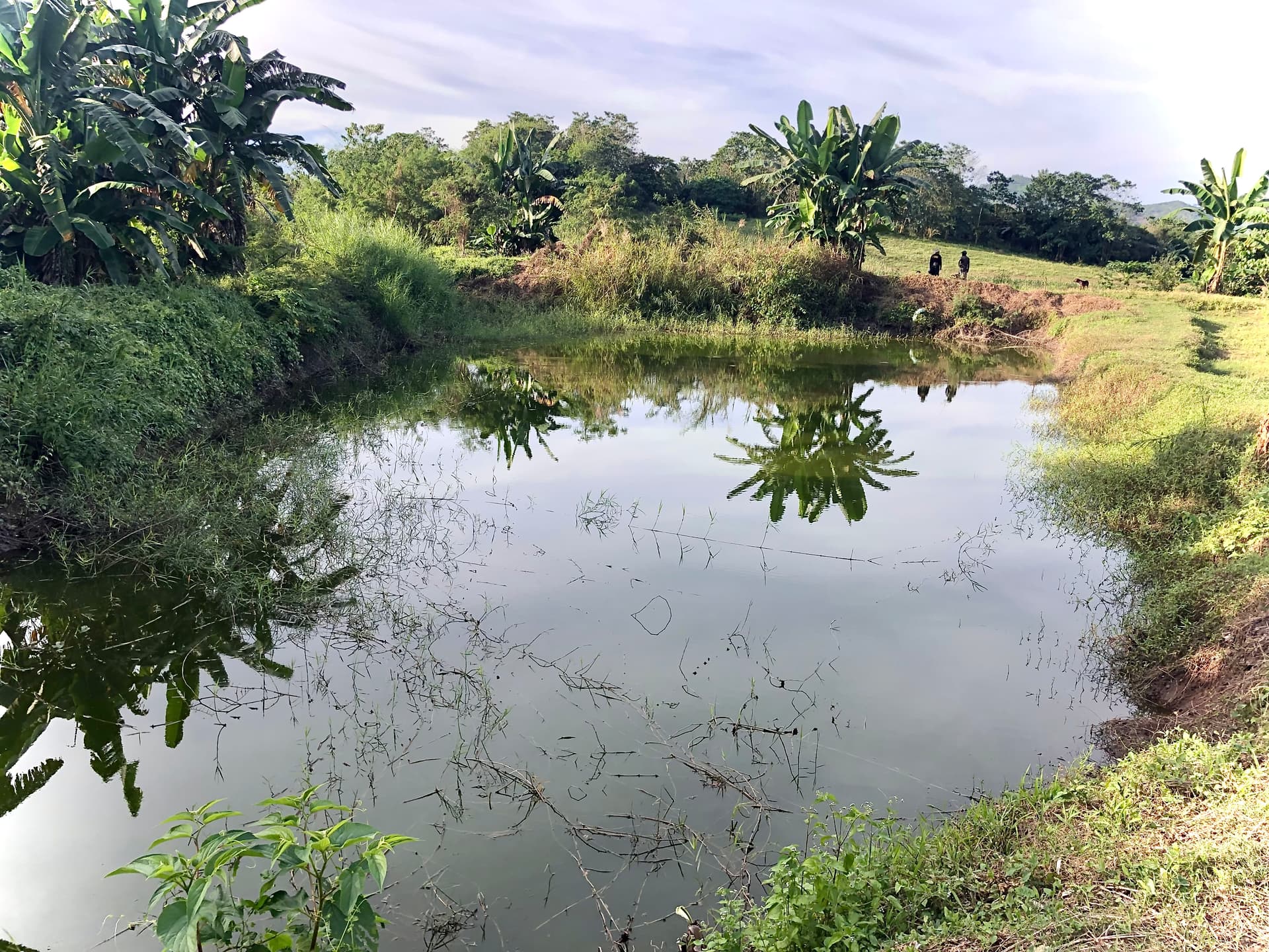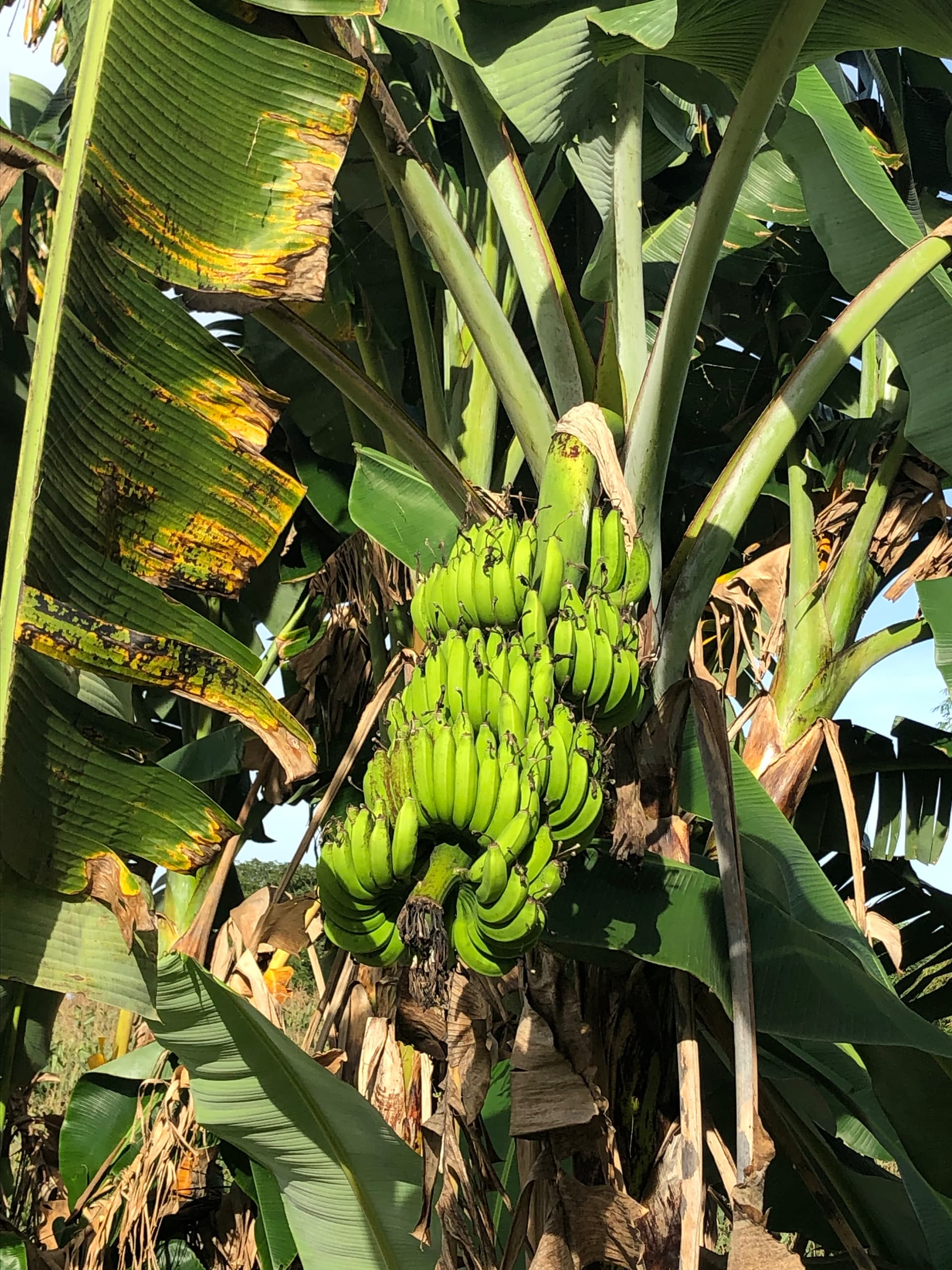 Angebaut werden von der Familie hauptsächlich Gemüse, Obst (Bananen, Mangobäume etc.), aber es gibt auch einen Fischteich (Tilapia), Hühnerzucht, Ziegen etc. Zumindest ist die Selbstversorgung gesichert, wenn es mal eng werden sollte… ![]()