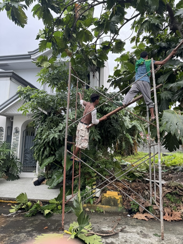 Wie im Sturm-Thread geschrieben, habe ich festgestellt, dass die Zuleitungen ins Haus für die Versorgung mit lebenswichtigen Dingen wie PLDT, Converge, oder aber auch Kabelfernsehen, von Ästen eines nahestehenden Baumes überwuchert zu werden drohten. Da musste Abhilfe geschaffen werden. Ich hätte jetzt Die Jungs kommen lassen können, aber kurz gesagt: wenn jemand die Kabel ruiniert dann bin ich das.