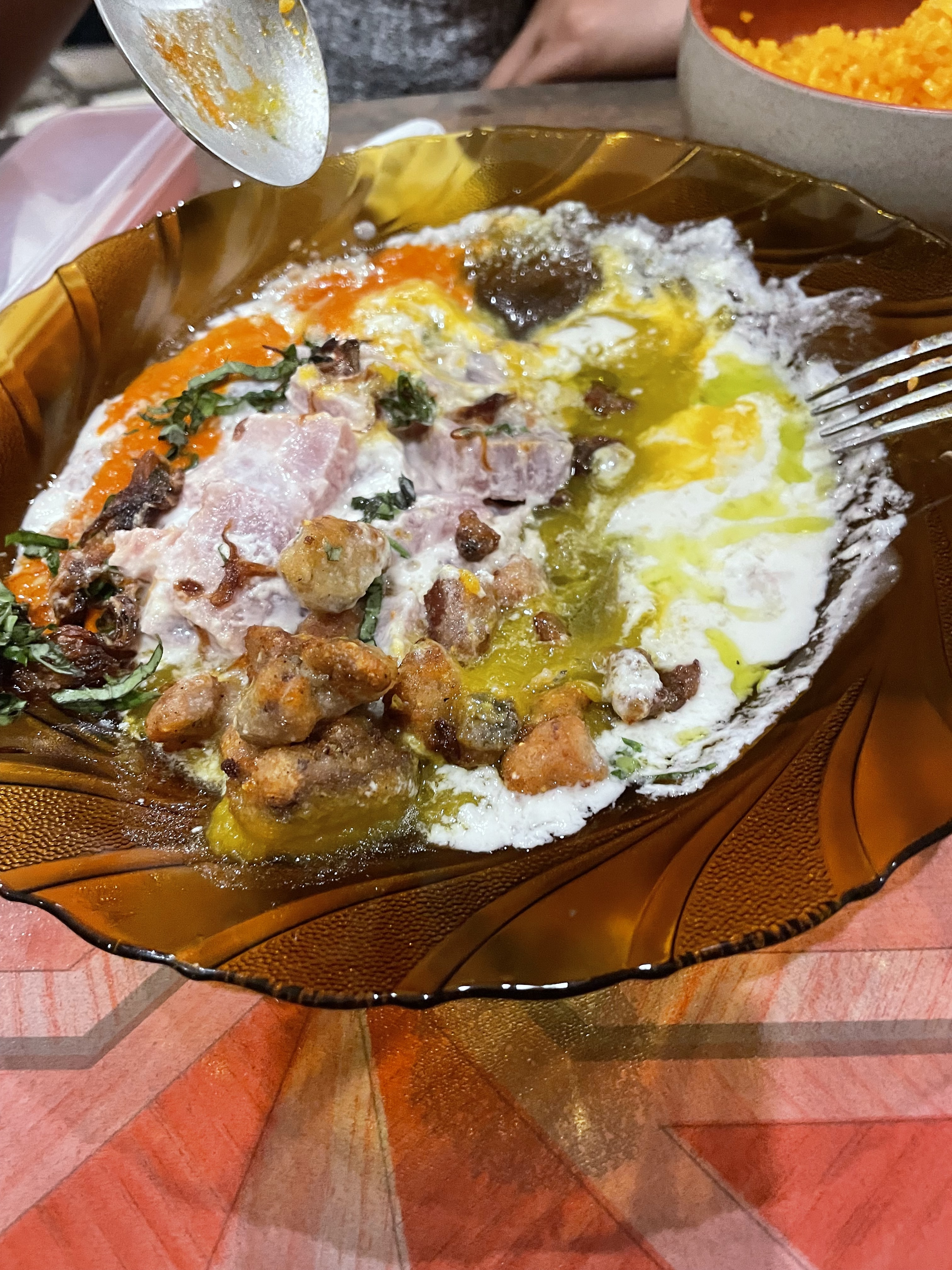 gerade hier. Das Essen ist wirklich sehr aussergewöhnlich. Ich hatte etwas Pech weil mein „Santa Fe“ mit Vinegard überladen war. Das hat den Geschmack geschadet. Habe die Sosse dann entfernen lassen. Danach war alles wieder in Balance. Ohne Reservierung geht hier aber Nix. Preise auch so um die 500 Piso pro Gang.
