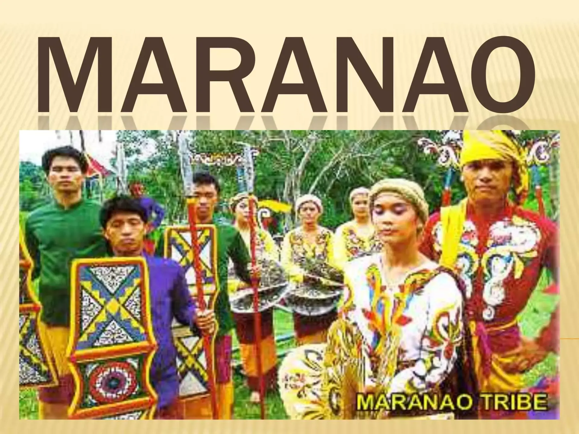 Die Maranao gehören zu den bedeutendsten ethnischen Gruppen im Süden der Philippinen. Ihr Name leitet sich vom Wort „ranao“ ab, was „See“ bedeutet, und verweist direkt auf ihr historisches und kulturelles Zentrum: den Lanao-See (Lake Lanao) auf der Insel Mindanao. Die Maranao sind eng mit diesem Gebiet verbunden und haben über Jahrhunderte hinweg eine eigenständige, reiche Kultur entwickelt, die sich bis heute deutlich von anderen philippinischen Volksgruppen unterscheidet.