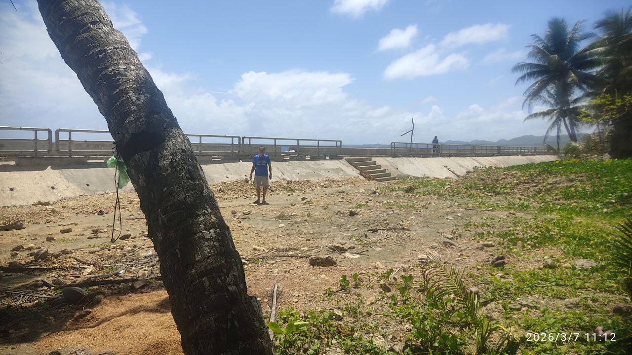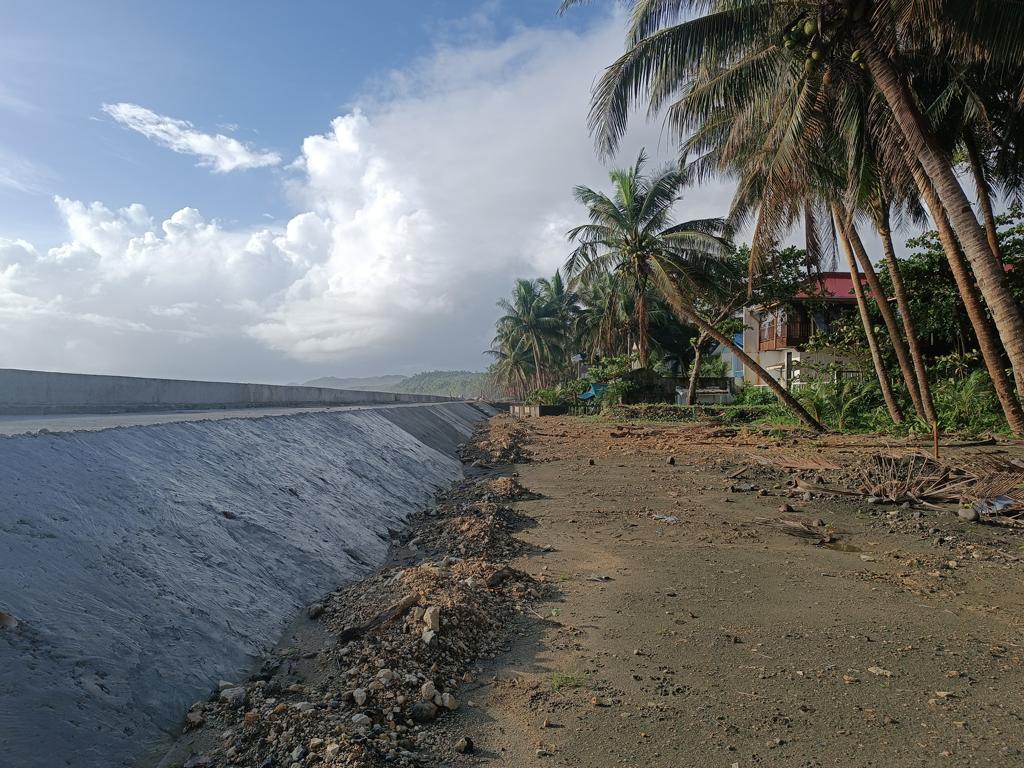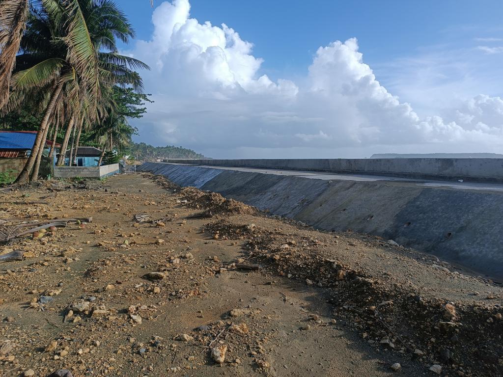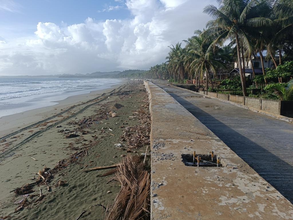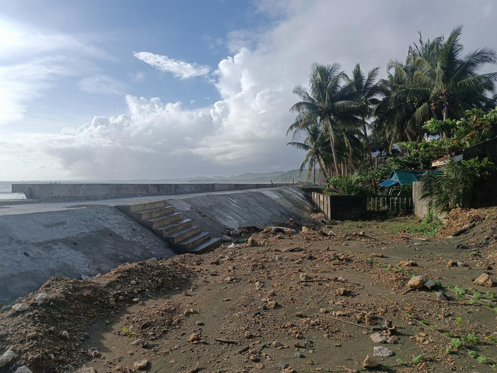Ich war das letzte Mal 2017 an unserem Grundstück, meine Frau das letzte Mal vor 3 Jahren. Wir hörten im letzten Jahr, dass DPWH im Jahr 2024 mit dem Bau einer Seawall begonnen hätte. Als ich letzten Dezember in Borongan ankam, fuhr ich mit etwas gemischten Gefühlen nach Lalawigan, nicht wissend was mich erwarten würde. Als ich an unserem Grundstück ankam, traf mich fast der Schlag. Man hatte den halben Strand auf links gedreht und eine mächtige Mauer direkt auf den Strand gebaut. Die Mauer blockiert nicht nur den Blick aufs Meer, sondern auch den Zugang zum Strand. Die Mauer ist so hoch, dass der (Rest-) Strand kaum mehr erreichbar ist. An einer Stelle gibt es eine Treppe, über die man auf die Mauer gelangt. Von oben mal kurz zum Strand zu kommen ist kaum möglich. Runter evtl. schon, zurück wird es dann schwierig. Ich muss zugeben dass ich fast Tränen in den Augen hatte.