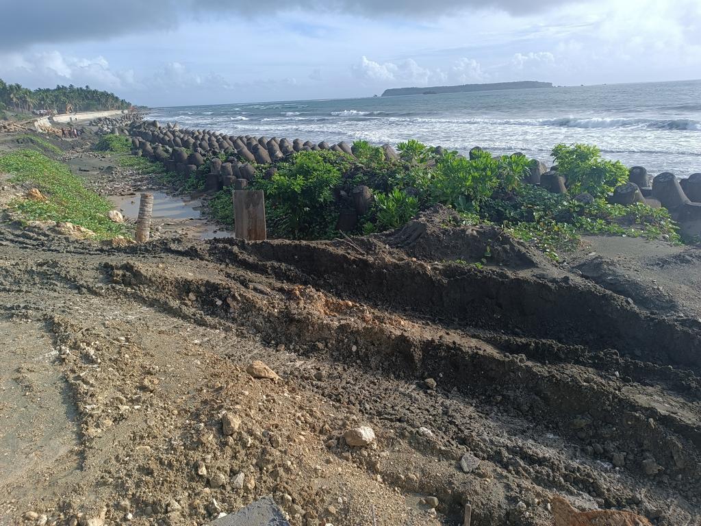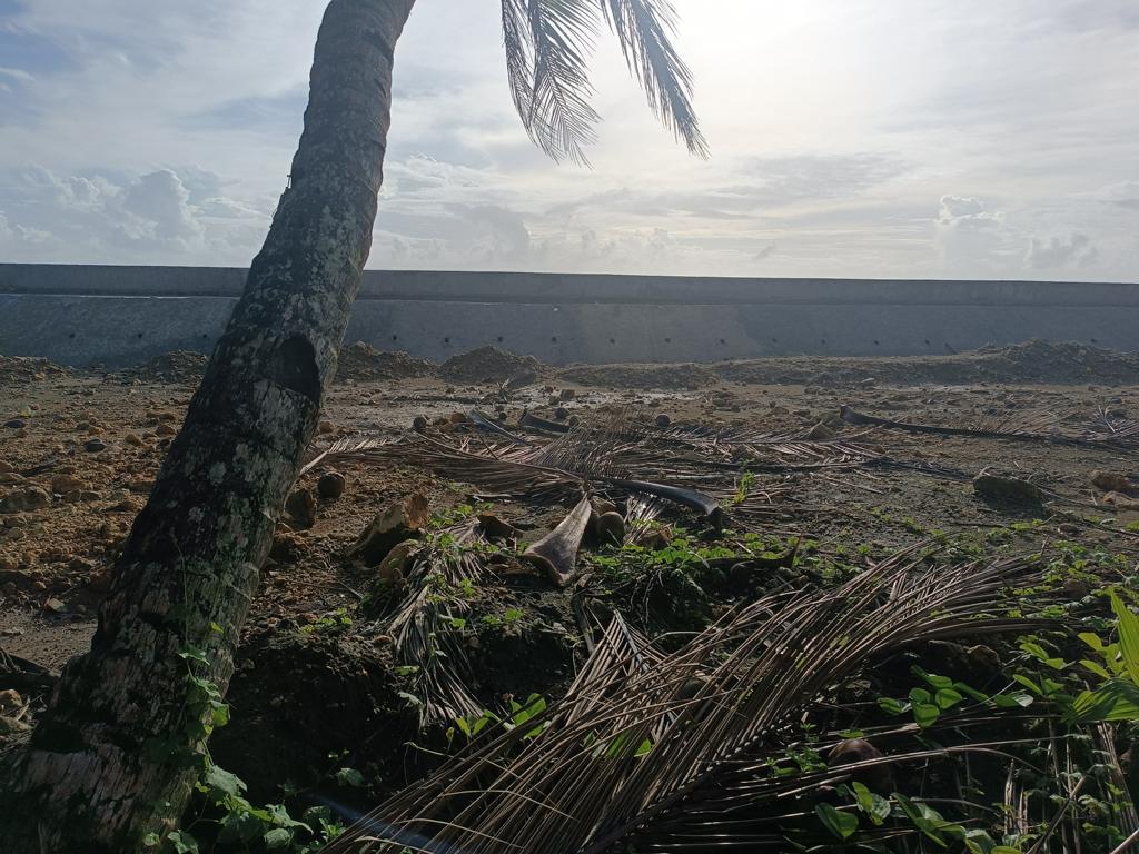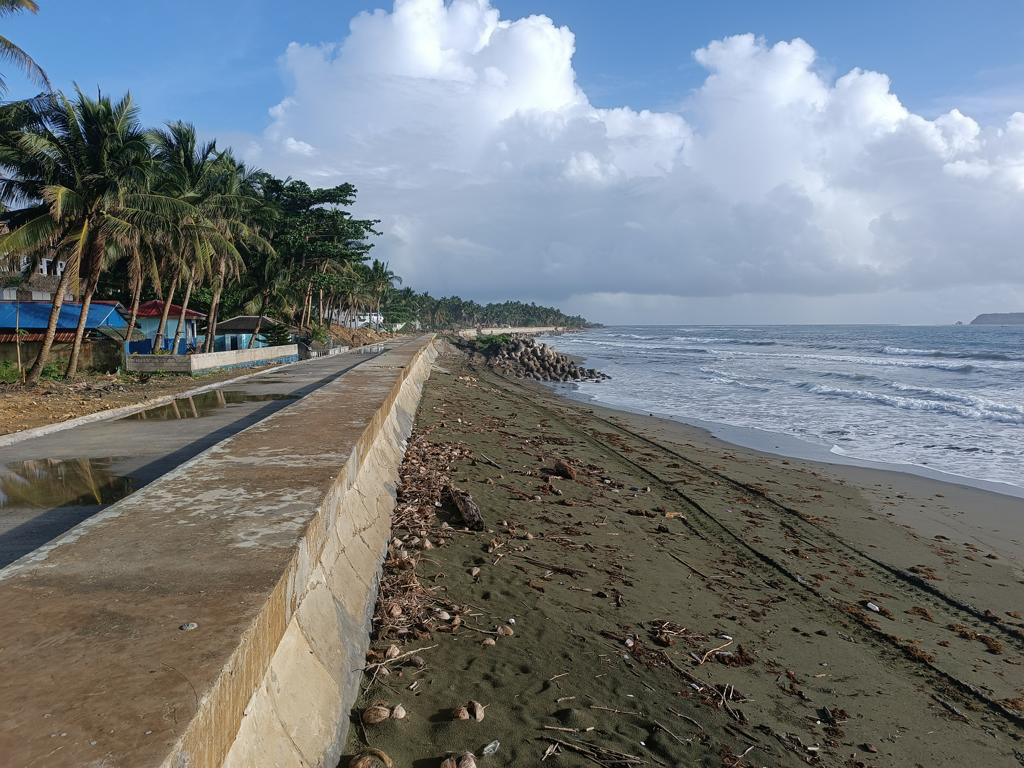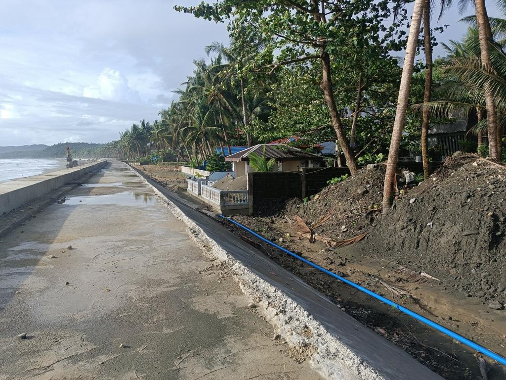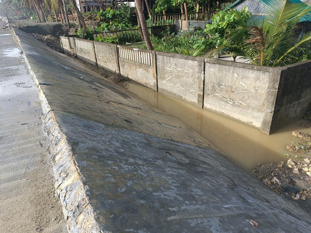 Ich war das letzte Mal 2017 an unserem Grundstück, meine Frau das letzte Mal vor 3 Jahren. Wir hörten im letzten Jahr, dass DPWH im Jahr 2024 mit dem Bau einer Seawall begonnen hätte. Als ich letzten Dezember in Borongan ankam, fuhr ich mit etwas gemischten Gefühlen nach Lalawigan, nicht wissend was mich erwarten würde. Als ich an unserem Grundstück ankam, traf mich fast der Schlag. Man hatte den halben Strand auf links gedreht und eine mächtige Mauer direkt auf den Strand gebaut. Die Mauer blockiert nicht nur den Blick aufs Meer, sondern auch den Zugang zum Strand. Die Mauer ist so hoch, dass der (Rest-) Strand kaum mehr erreichbar ist. An einer Stelle gibt es eine Treppe, über die man auf die Mauer gelangt. Von oben mal kurz zum Strand zu kommen ist kaum möglich. Runter evtl. schon, zurück wird es dann schwierig. Ich muss zugeben dass ich fast Tränen in den Augen hatte.