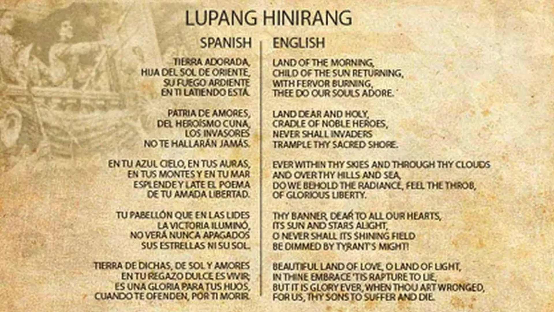 Die Nationalhymne wurde erstmals offiziell zusammen mit dem Hissen der Nationalflagge am 12. Juni 1898 gespielt, als General Emilio Aguinaldo am zentralen Fenster im zweiten Stock seines Hauses in Kawit, Cavite, die Unabhängigkeit der Philippinen von Spanien proklamierte.