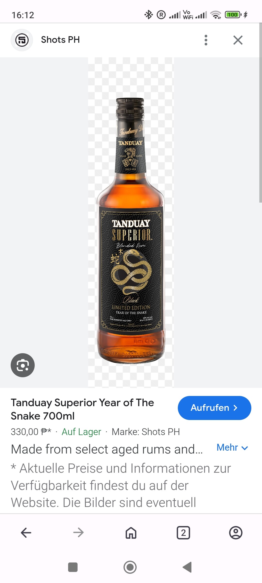 Wenn Du eine Lieferadresse hast, kannst Du den auch online bestellen Tanduay Rum 1854 15 Yrs 700ml | Lazada PH