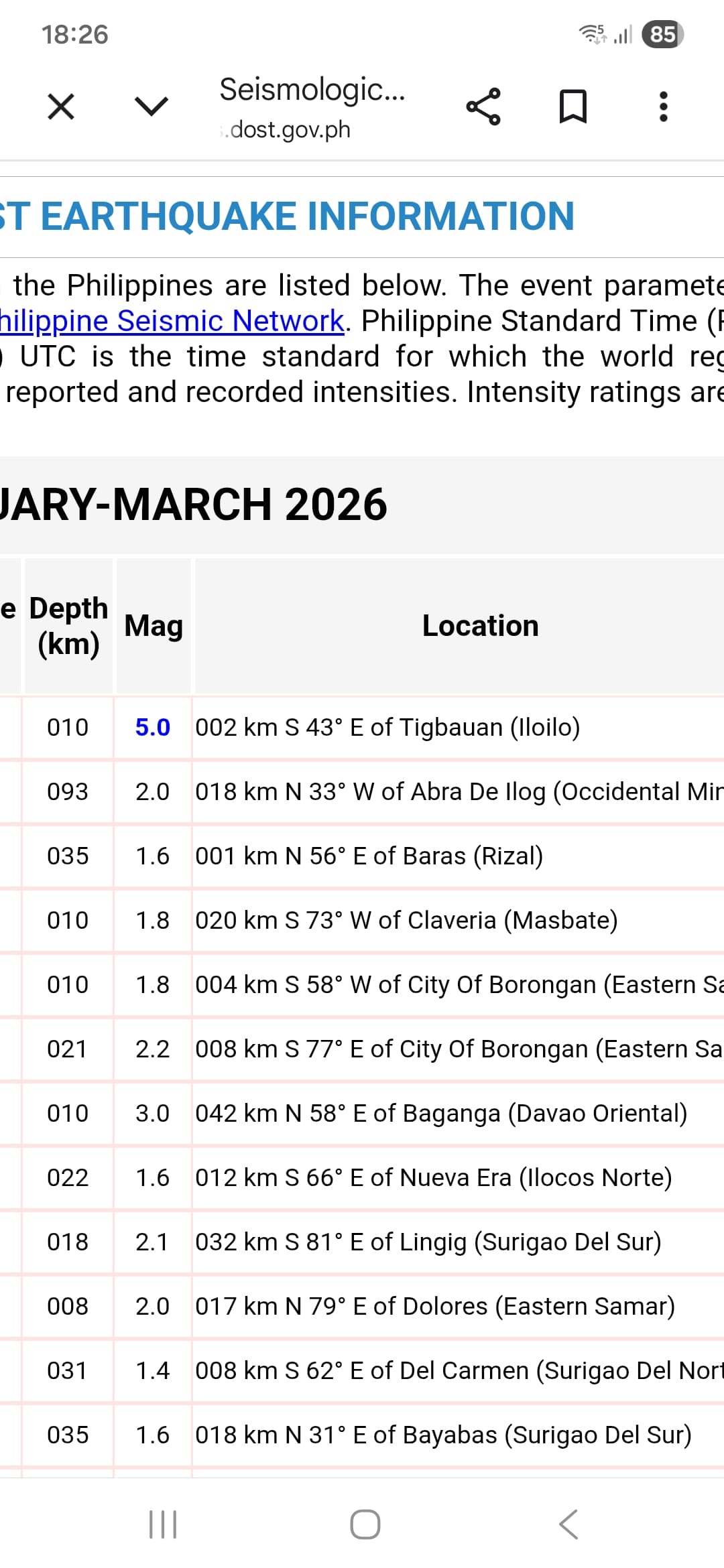 10 Minuten später war es dann auch im Bulletin von PHILVOLCS zu finden. Es war in der Nähe von Iloilo und mit 5.0 Magnitude angegeben (s.Screenshot)