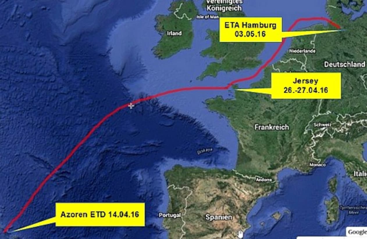Unser Segeltörn führte von Horta auf der Insel Faial nach der Kanalinsel Jersey und danach via Bremerhaven nach Hamburg.