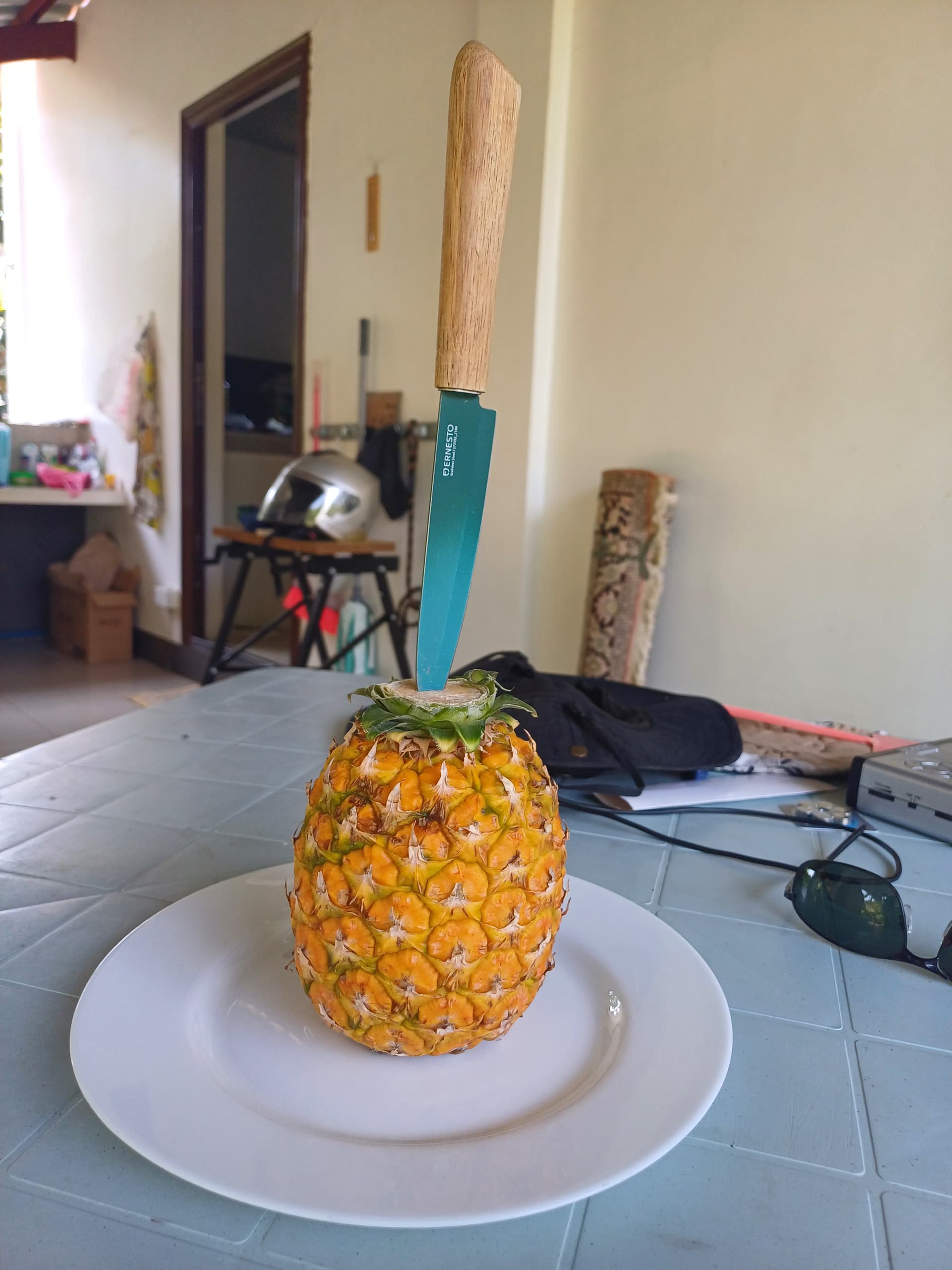Zum Frühstück gabs Bananenmüsli mit Kürbiskernen und zu Mittag wieder Ananas.