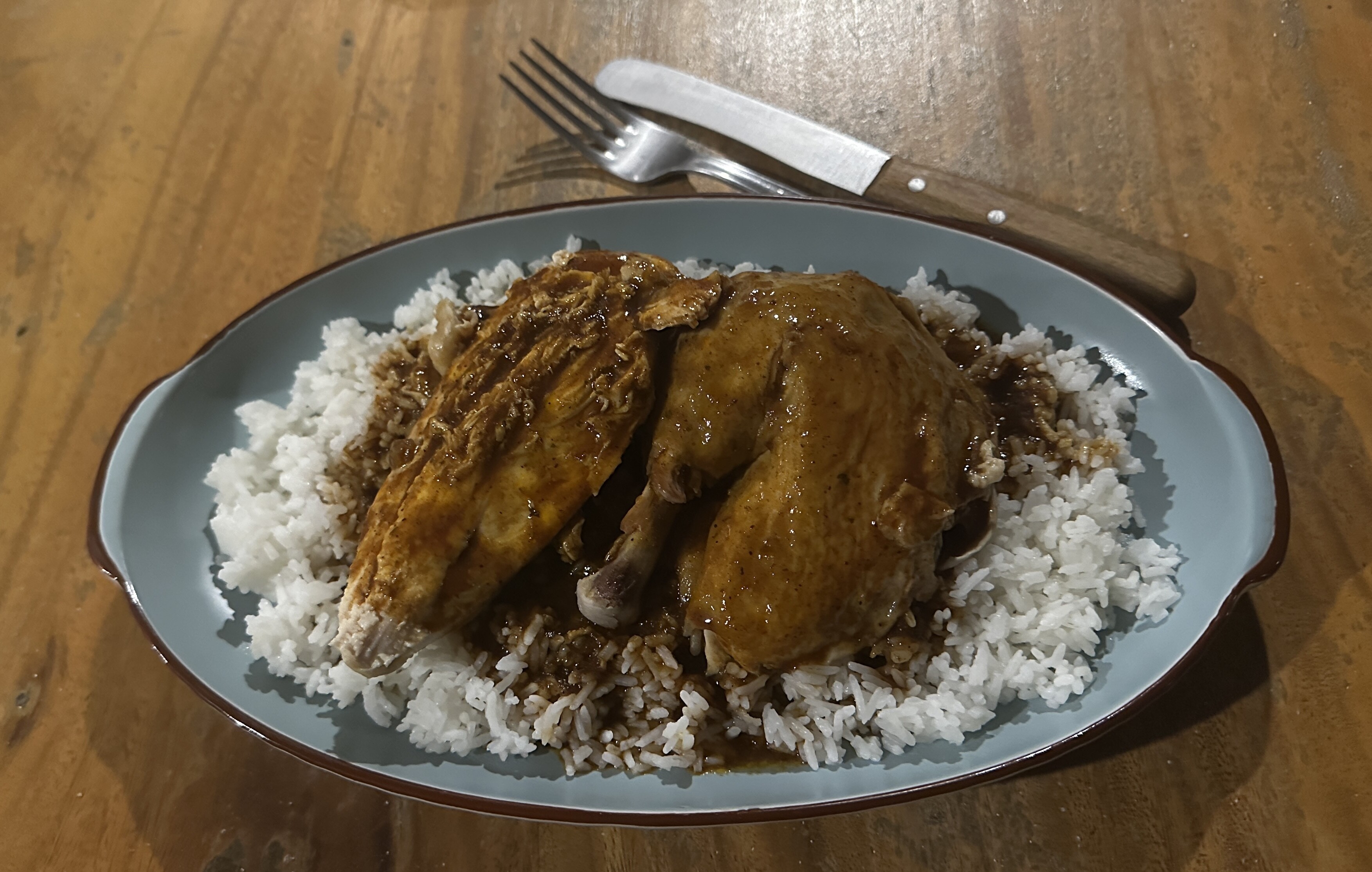 Ein ganzes Huhn gekocht und dann ein paar Teile mit der Bratensoße von der Dicken Rippe serviert…![]()