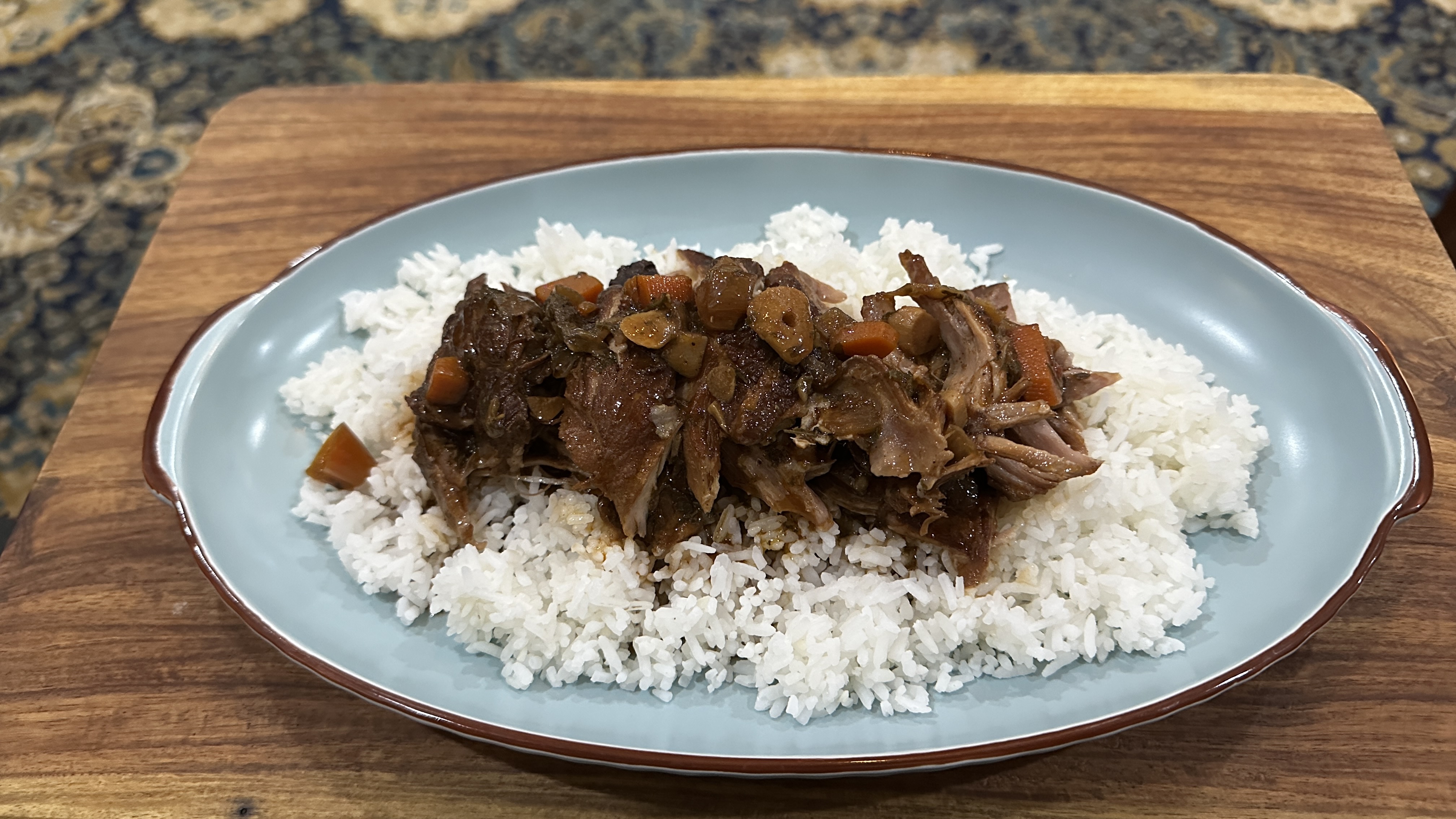 Das war dann wohl Gedankenübertragung. Gestern Abend gab es bei mir geschmorrte Dicke Rippe mit Reis.