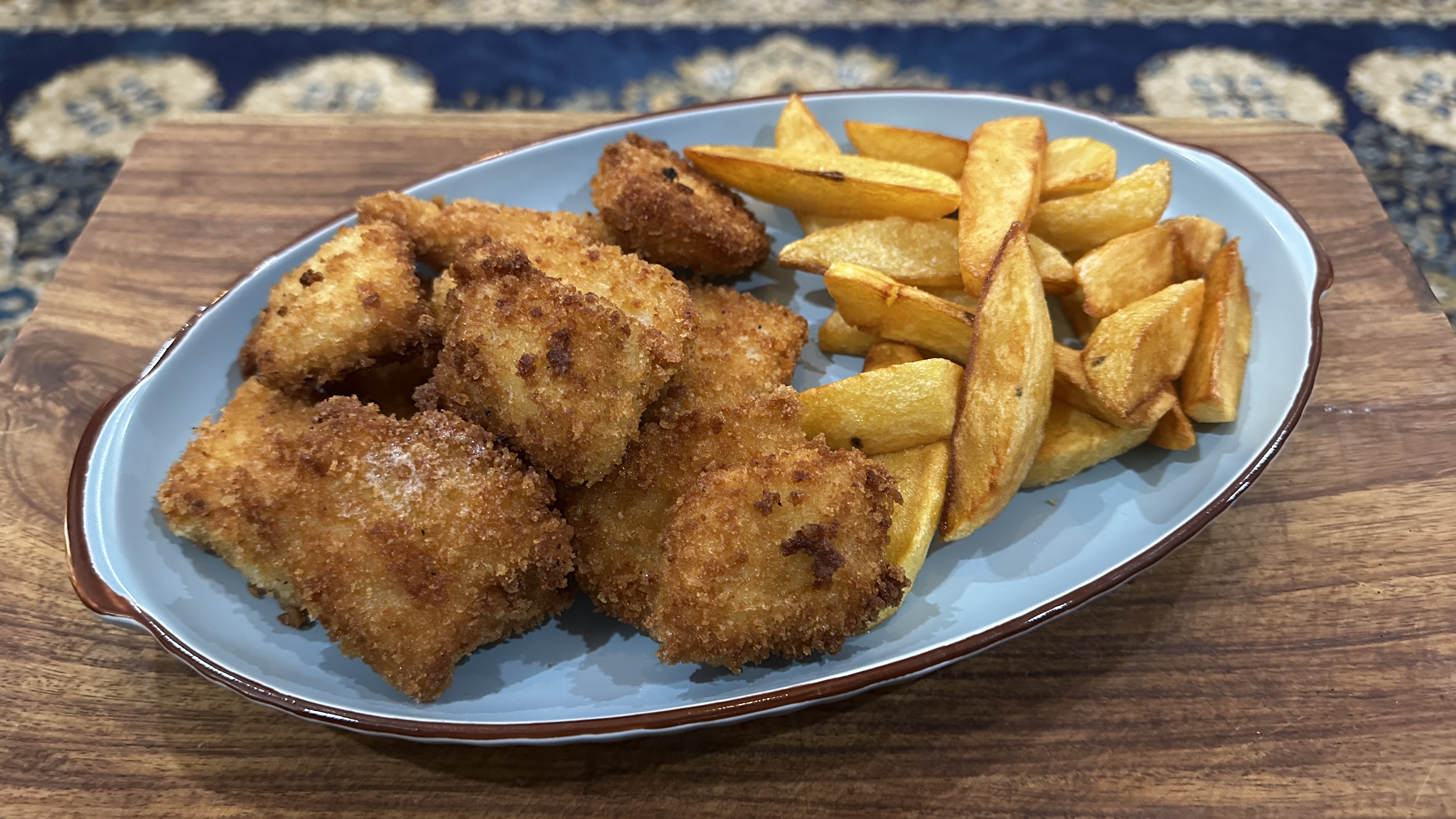 von frisch aufgetauten Pangasius-Filets… dabei isset mir völlig wurscht, daß dieser Fisch aus Vietnam einen ganz miesen Ruf genießt.