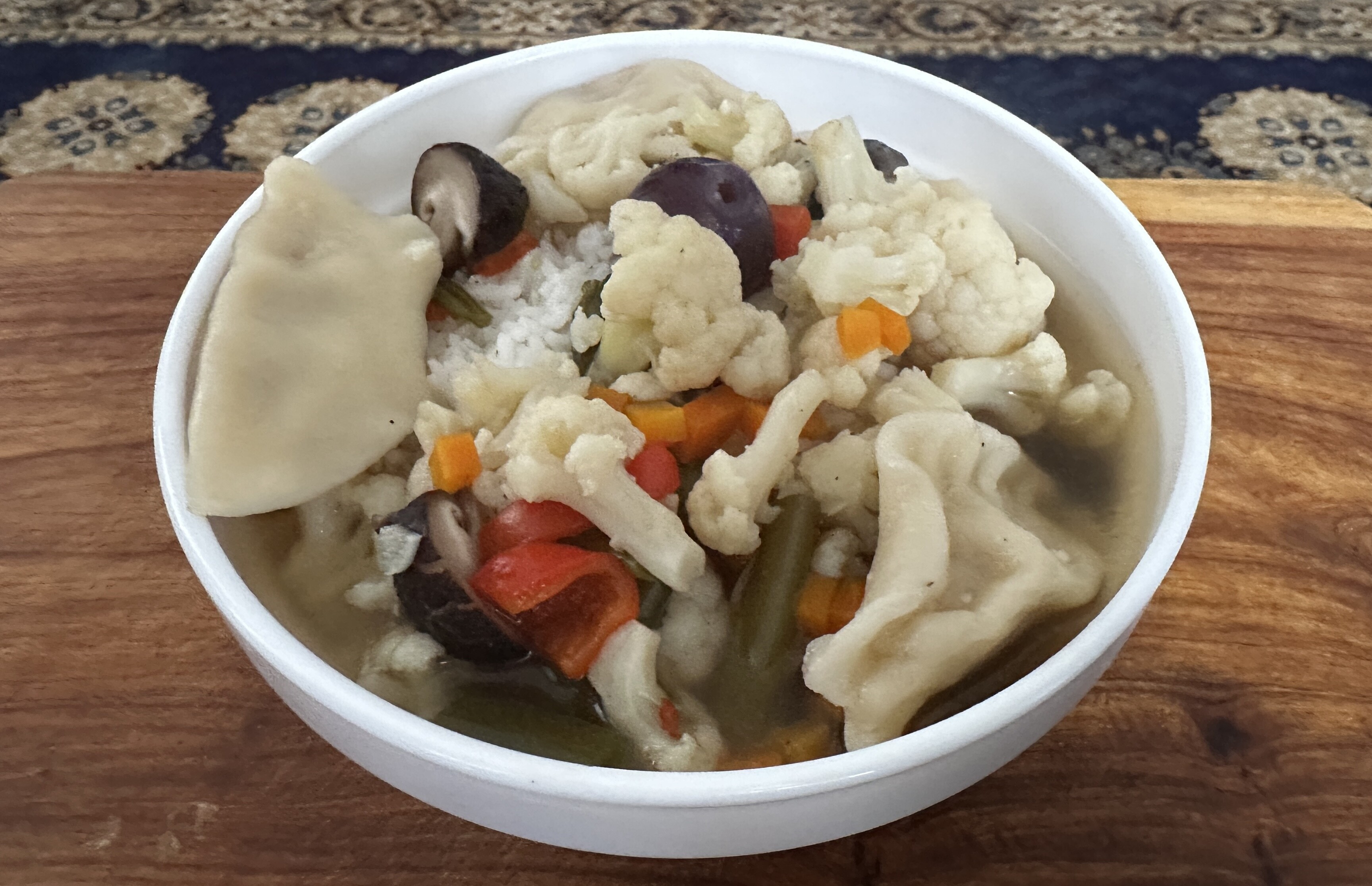 Gestern gabs verschiedene Wurzelgemüse aus dem Garten mit ungeschältem Reis.