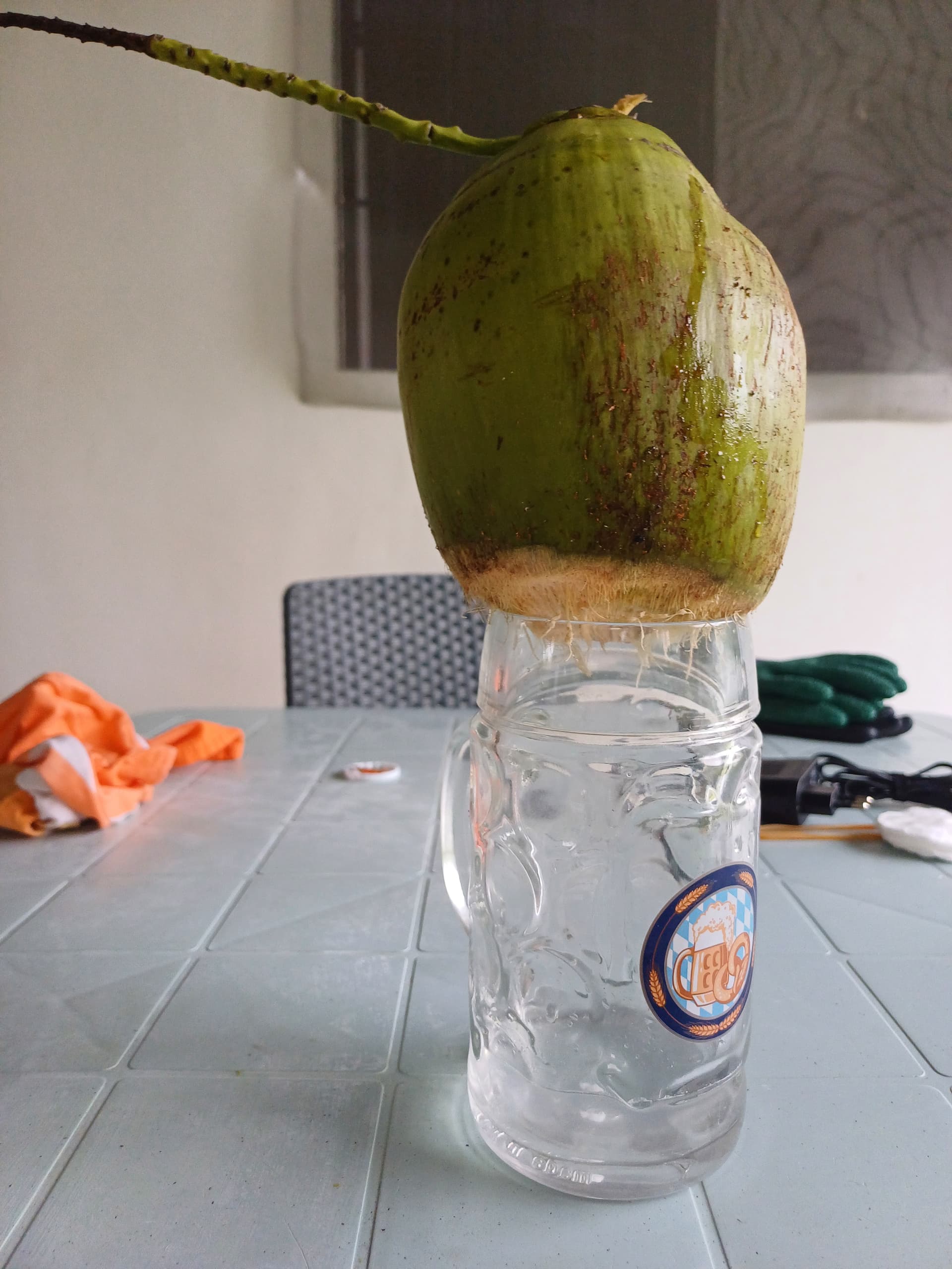 Dazu leckeres Kokuswasser und Fleisch, wie immer alles aus unsrem Garten.
