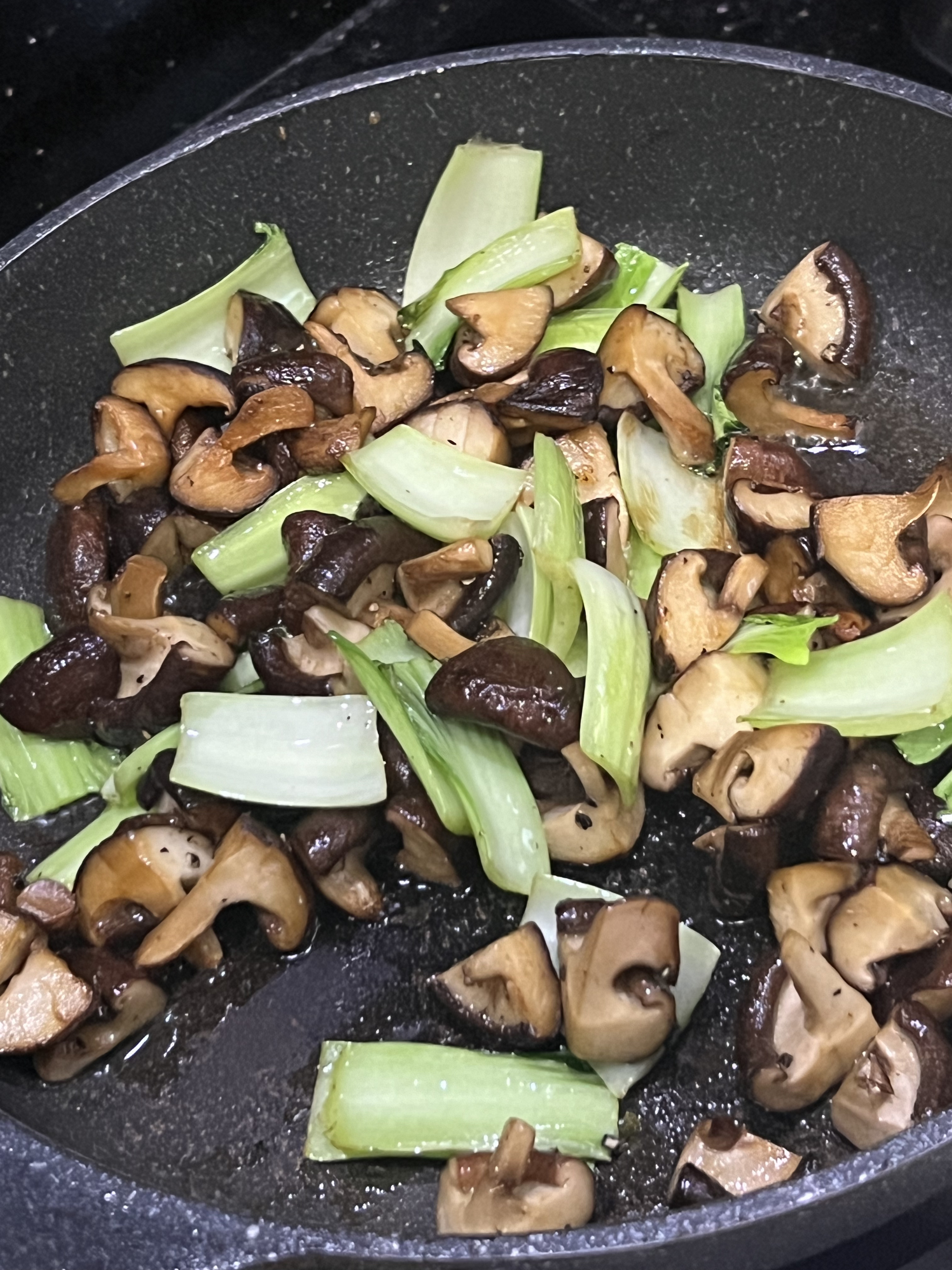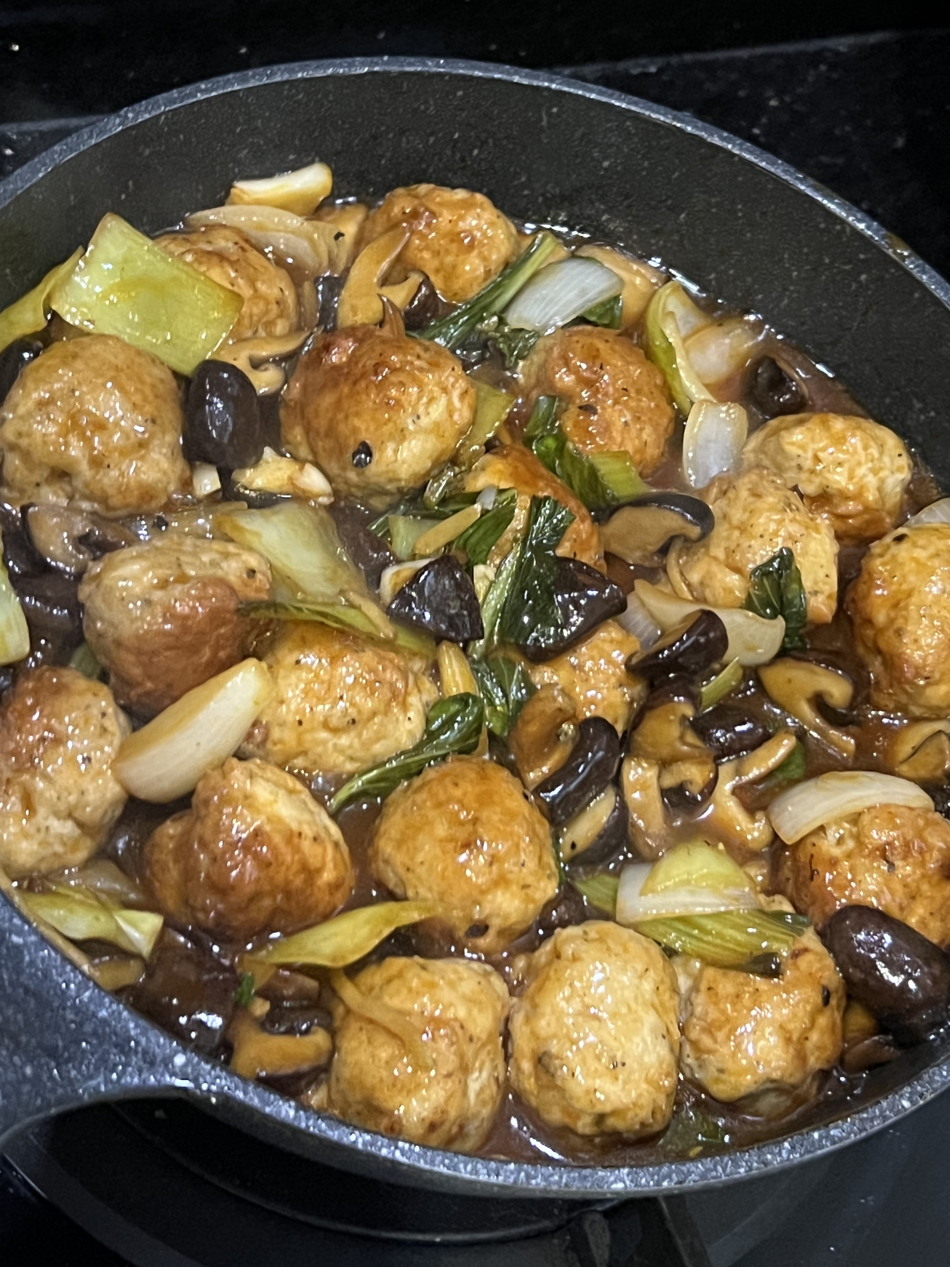 diesmal war es Hähnchenhackfleisch, Shiitake und bok choy… die Küchen-Bilder hat Lily gemacht…