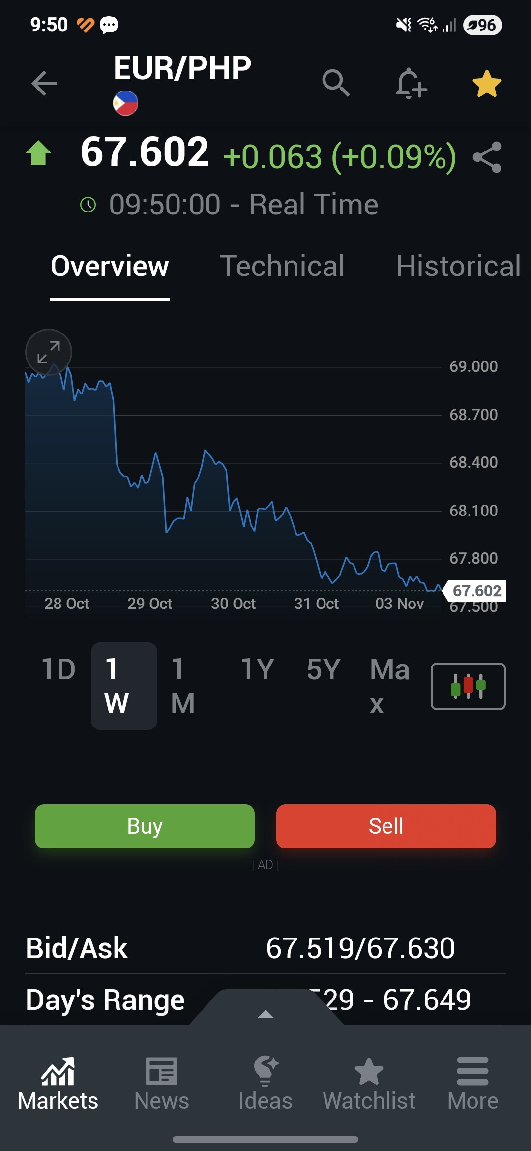 Ich habe immer Zielwerte bei Wise, wo dann der Umtausch automatisch vorgenommen wird, sobald der gewünschte Kurs erreicht ist. So wurden beim Kurs von 68 dann einiges getauscht.